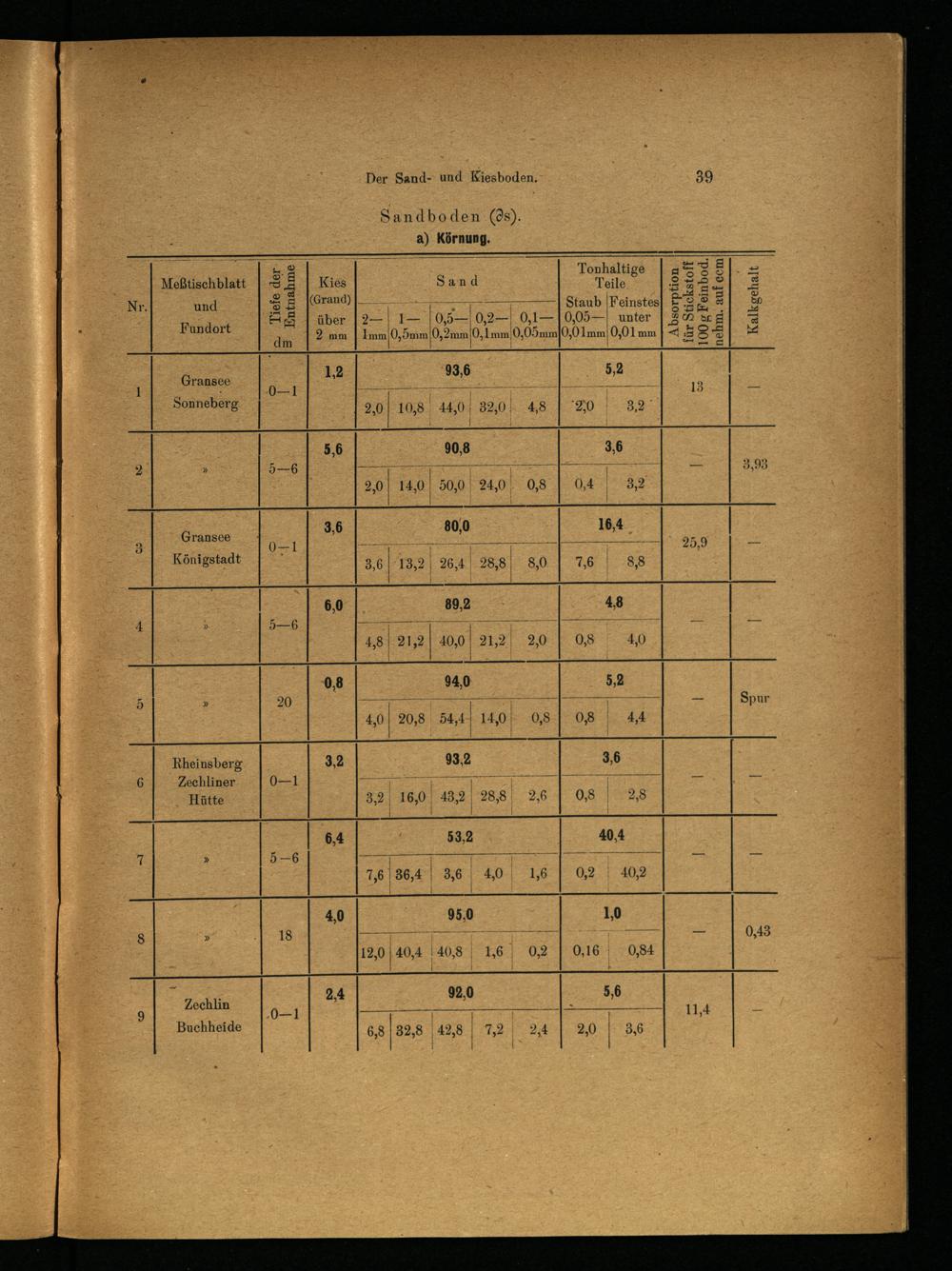 Absorption für Stickstoff lOOgFeinbod. nehm. auf ccm