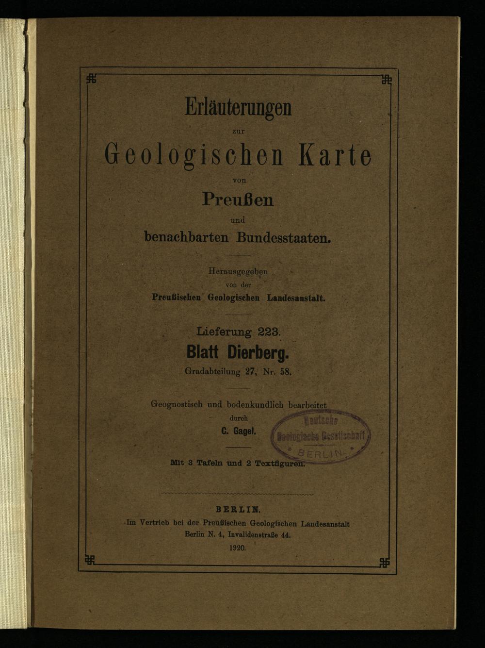 Preußischen Geologischen Landesanstalt.