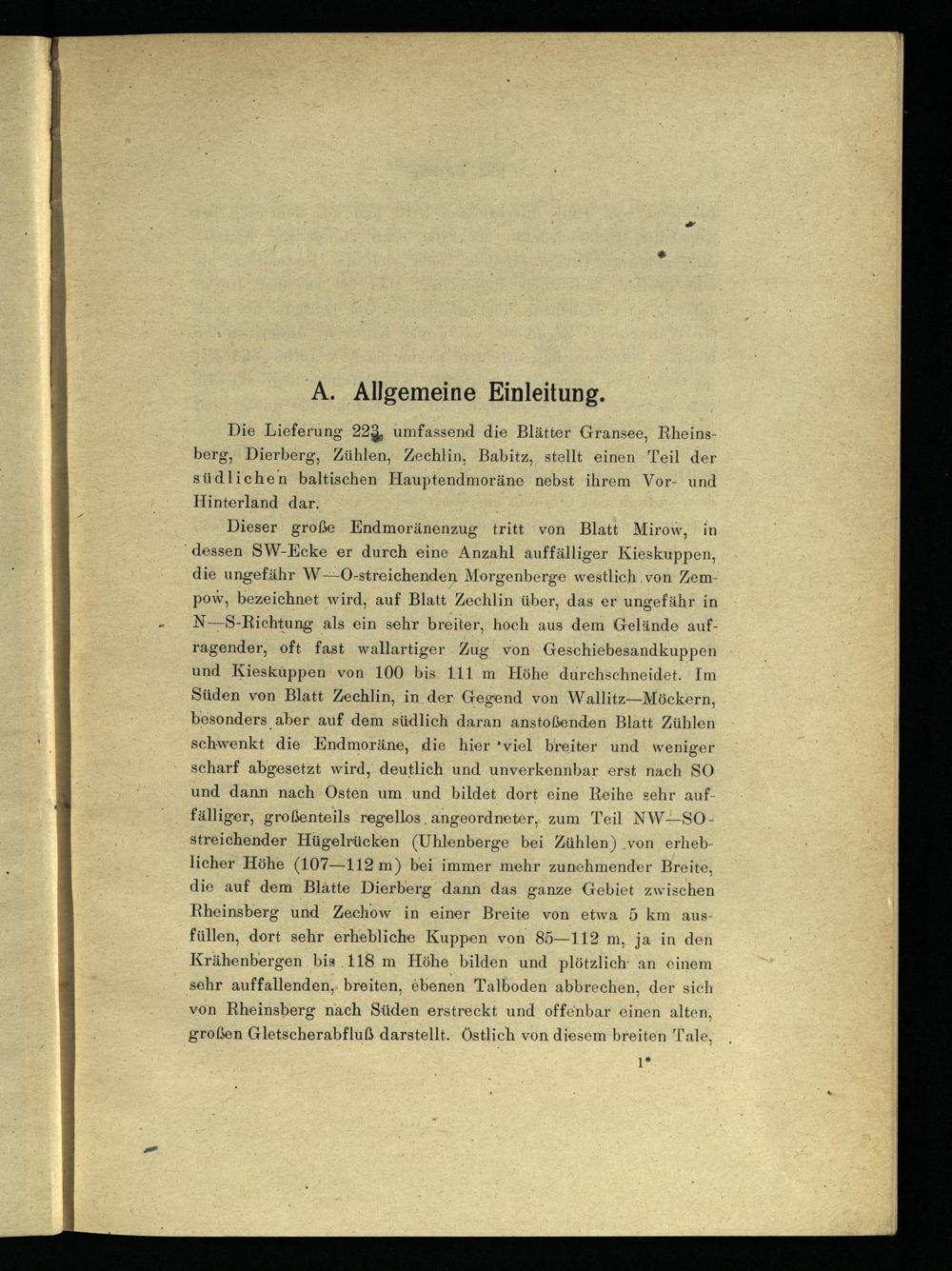 Die Lieferung 223, umfassend die Blätter Gransee , Rheins- berg, Dierberg, Zühlen, Zechlin , Babitz, stellt einen Teil der südlichen baltischen Hauptendmoräne nebst ihrem Vor- und Hinterland dar.