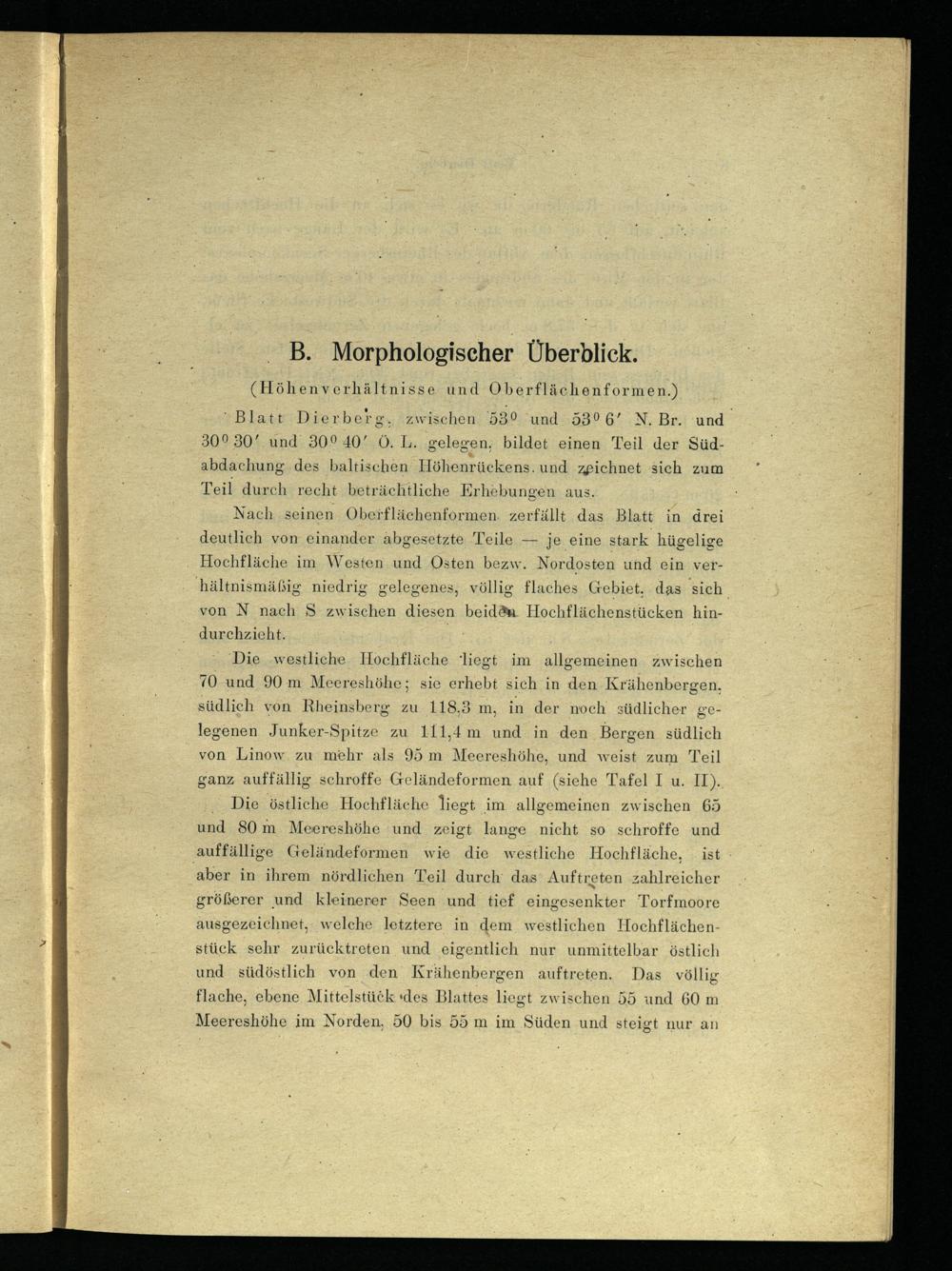 Blatt Dierberg'. zwischen 53° und 53° 6' N. Br. und 30° 30' und 30° 40' Ö. L. gelegen, bildet einen Teil der Südabdachung des baltischen Höhenrückens und zeichnet sich zum Teil durch recht beträchtliche Erhebungen aus.