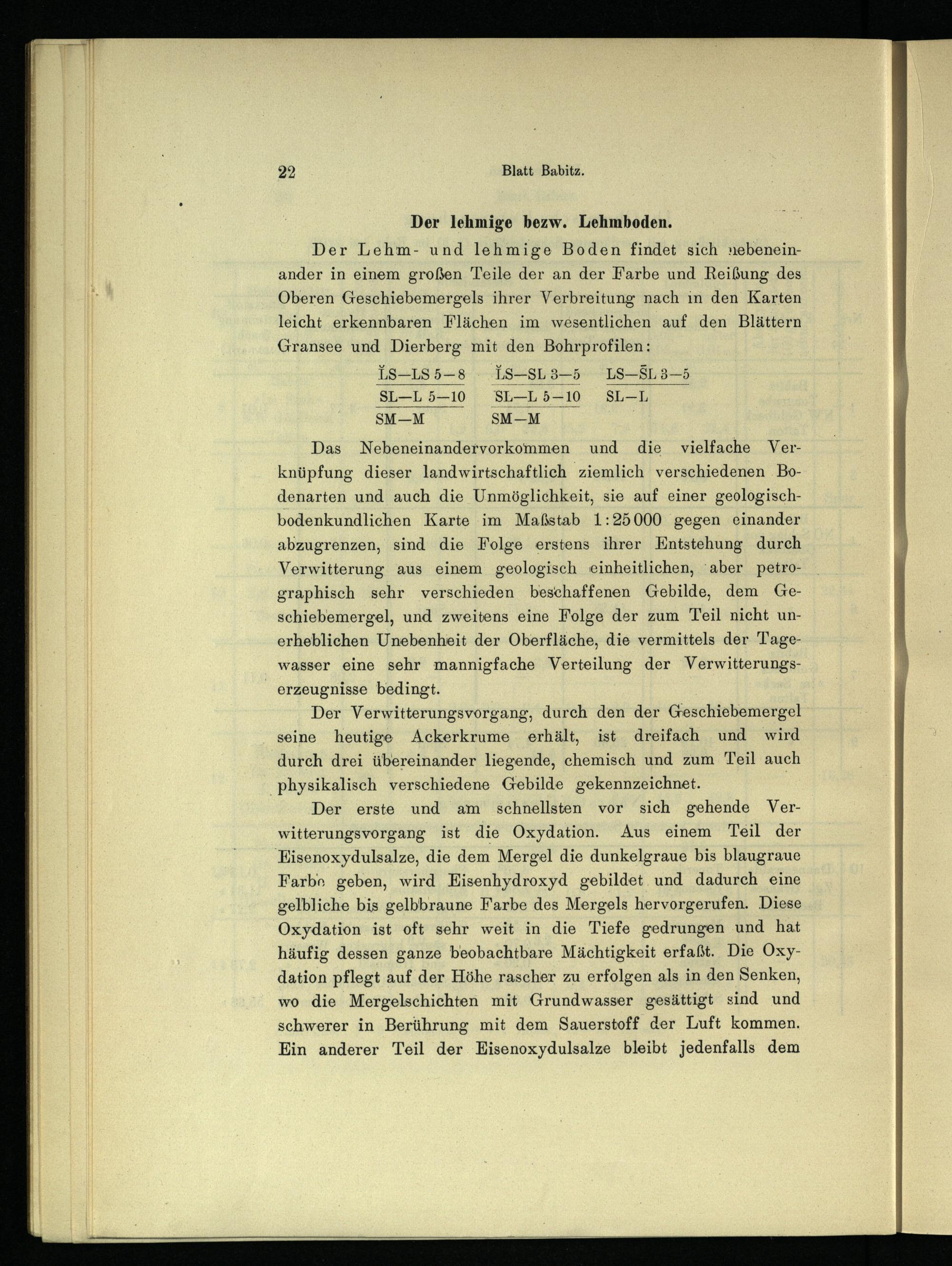 Der Lehm- und lehmige Boden findet sich nebeneinander in einem großen Teile der an der Farbe und Reißung des Oberen Geschiebemergels ihrer Verbreitung nach in den Karten leicht erkennbaren Flächen im wesentlichen auf den Blättern Gransee und Dierberg mit den Bohrprofilen: