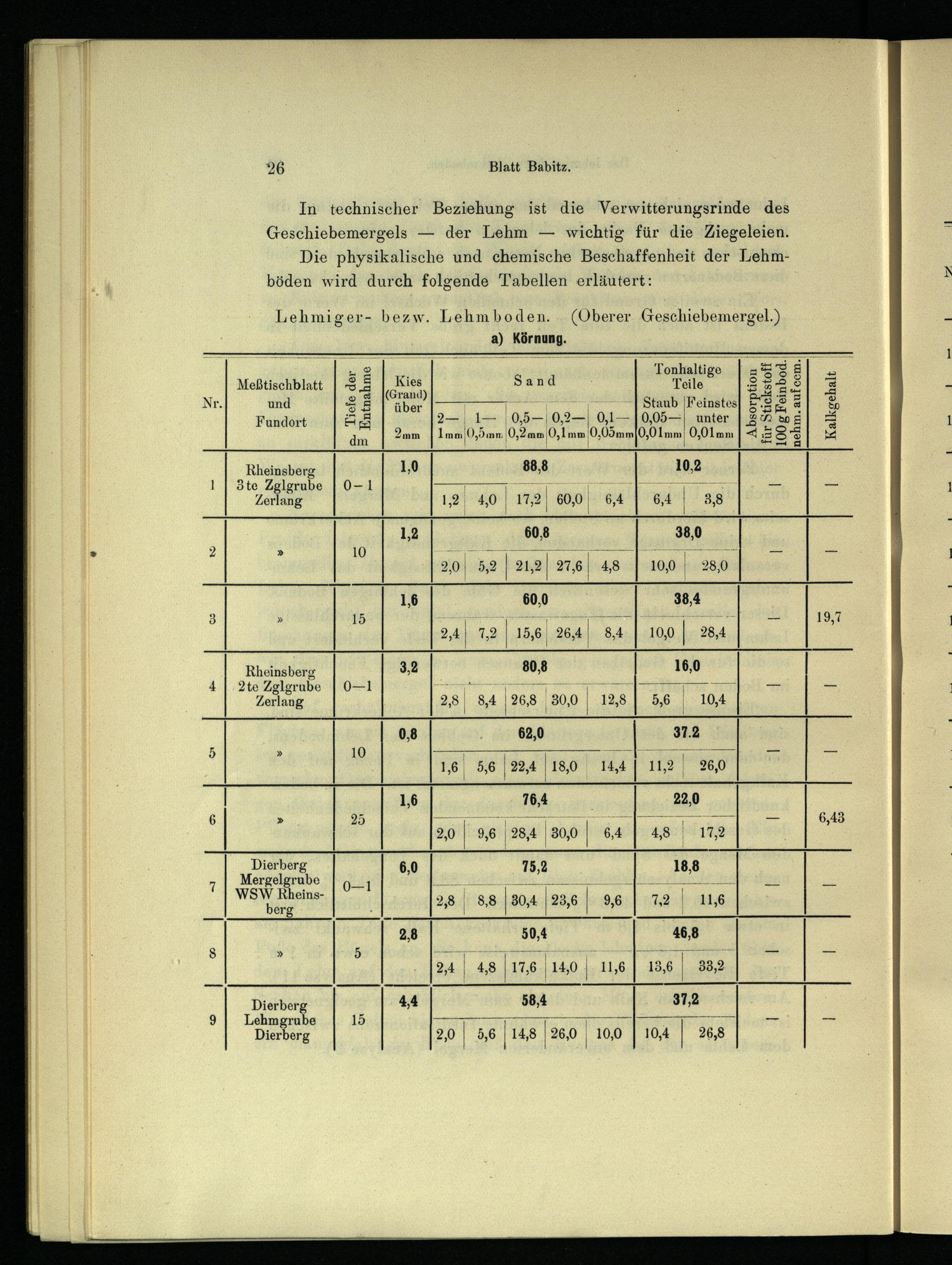 Die physikalische und chemische Beschaffenheit der Lehmböden wird durch folgende Tabellen erläutert: