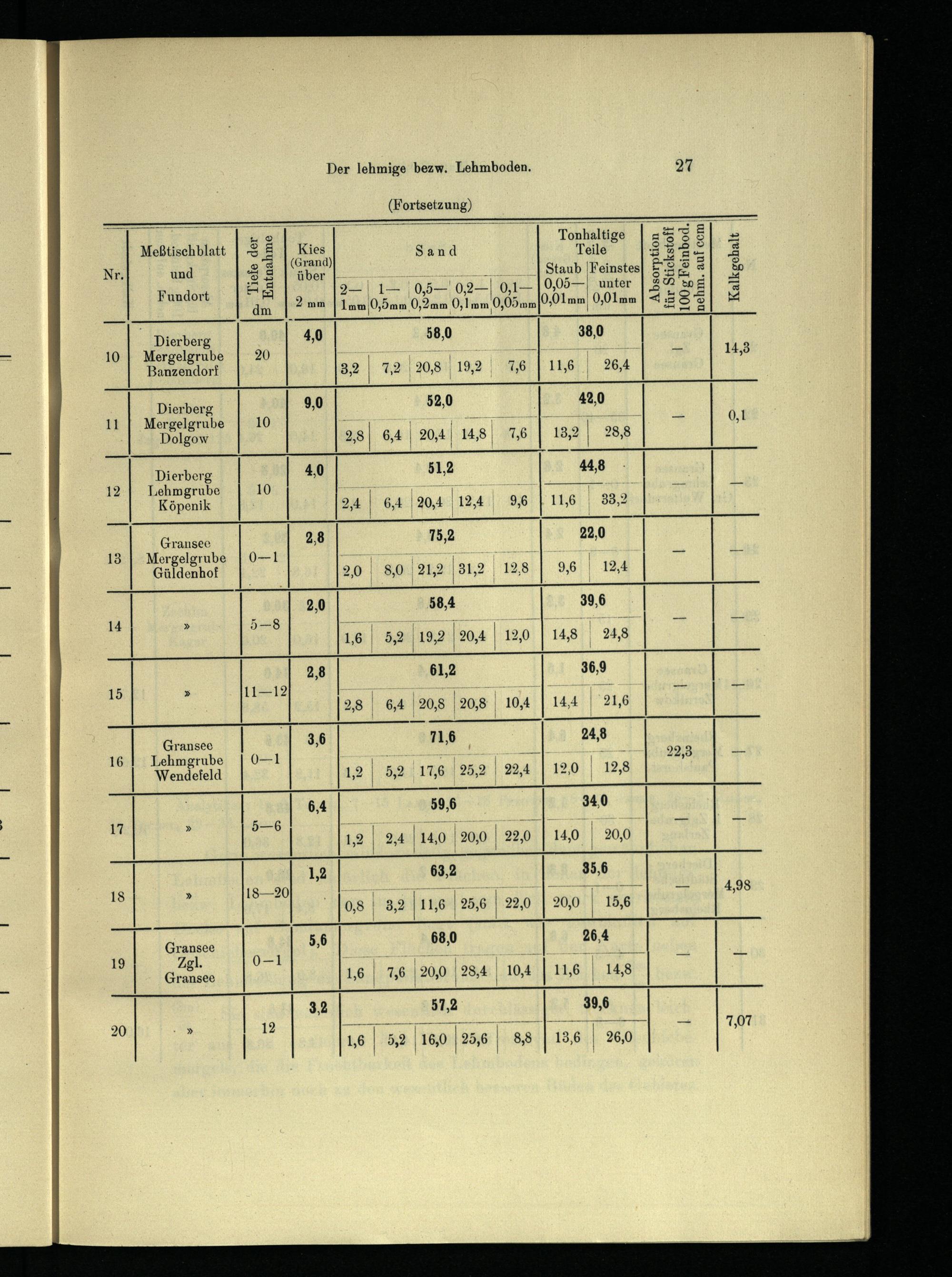 Absorption für Stickstoff lOOgFeinbod. nehm. auf ccm