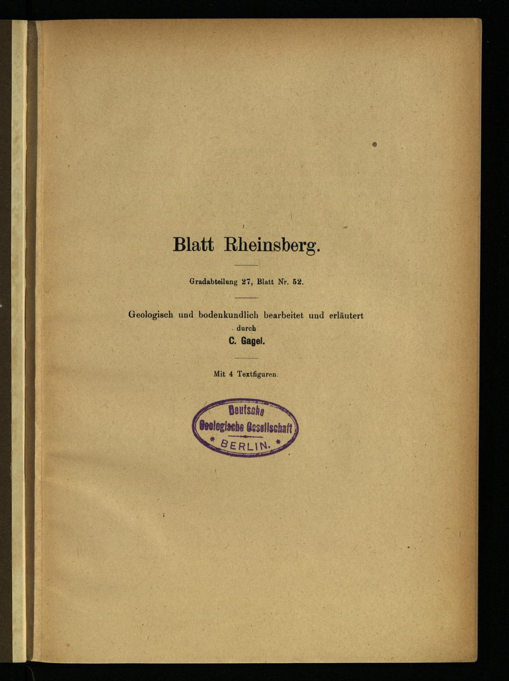 Blatt Rheinsberg . Gradabteilung 27, Blatt Nr. 52. Geologisch und bodenkundlich bearbeitet und erläutert durch C. Gagel. Mit 4 Textfiguren. ö£RLm-J