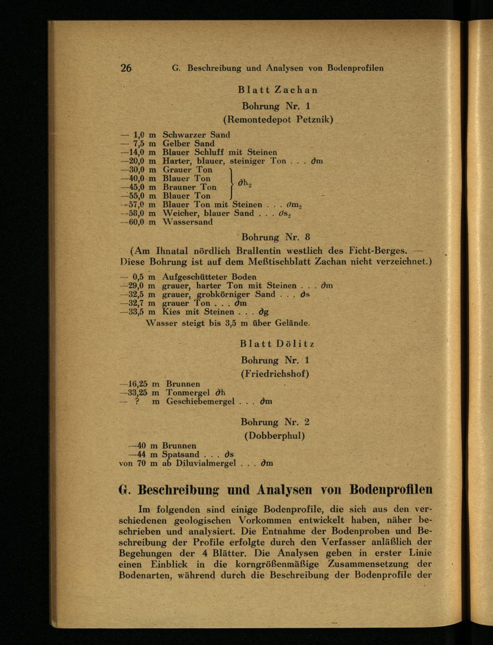 G. Beschreibung und Analysen von Bodenprofilen
