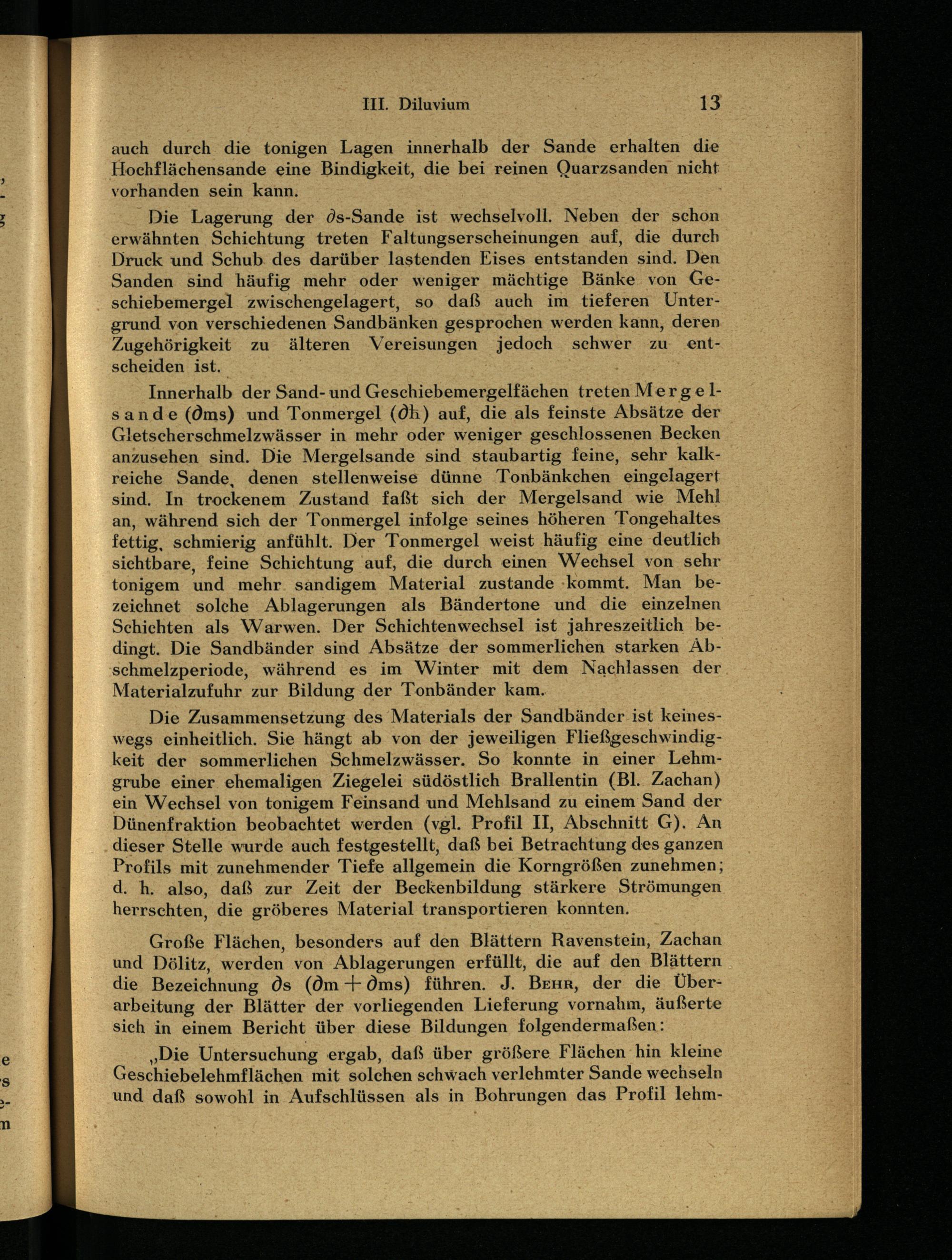 Große Flächen, besonders auf den Blättern Ravenstein , Zachan und Dölitz, werden von Ablagerungen erfüllt, die auf den Blättern die Bezeichnung ds (dm + dms) führen. J. Behr, der die Überarbeitung der Blätter der vorliegenden Lieferung vornahm, äußerte sich in einem Bericht über diese Bildungen folgendermaßen: