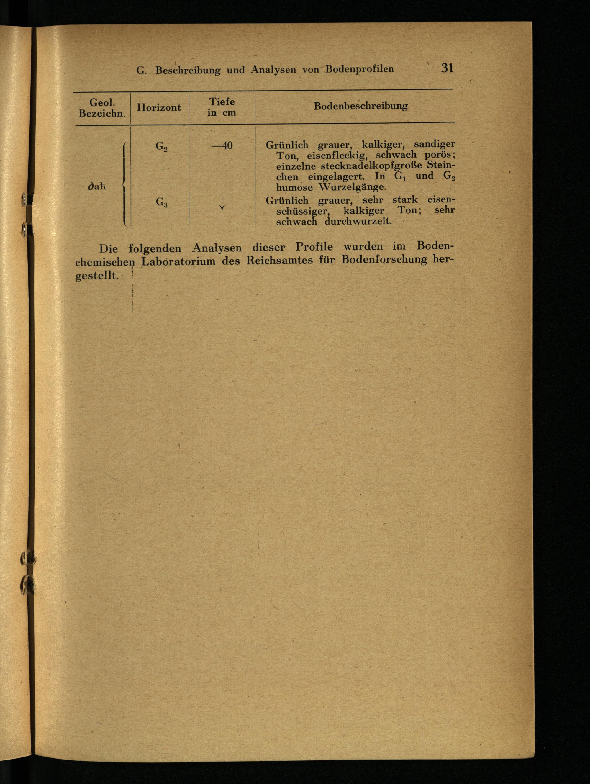 Die folgenden Analysen dieser Profile wurden im Bodenchemischen Laboratorium des Reichsamtes für Bodenforschung hergestellt.