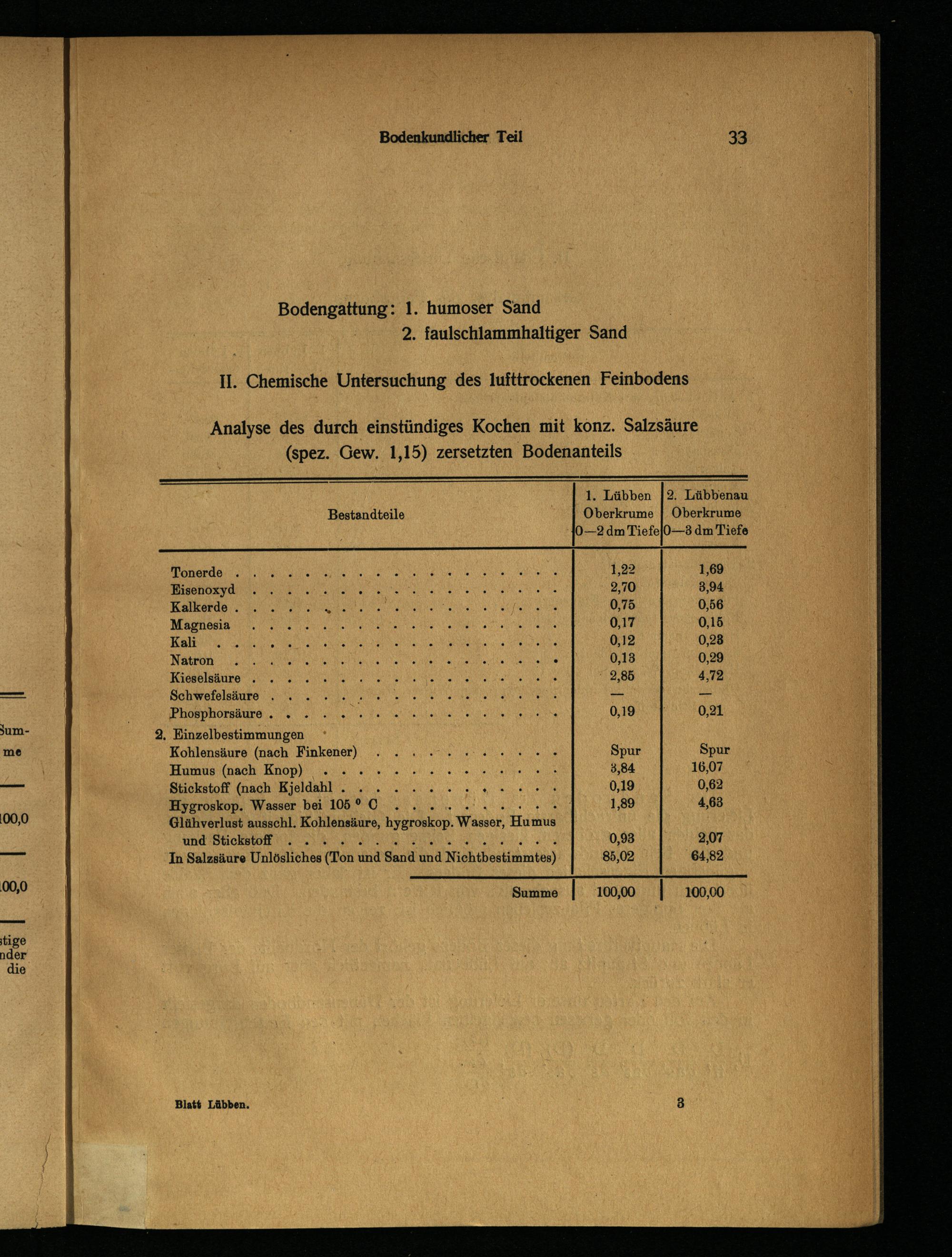 Analyse des durch einstündiges Kochen mit konz. Salzsäure (spez. Gew. 1,15) zersetzten Bodenanteils