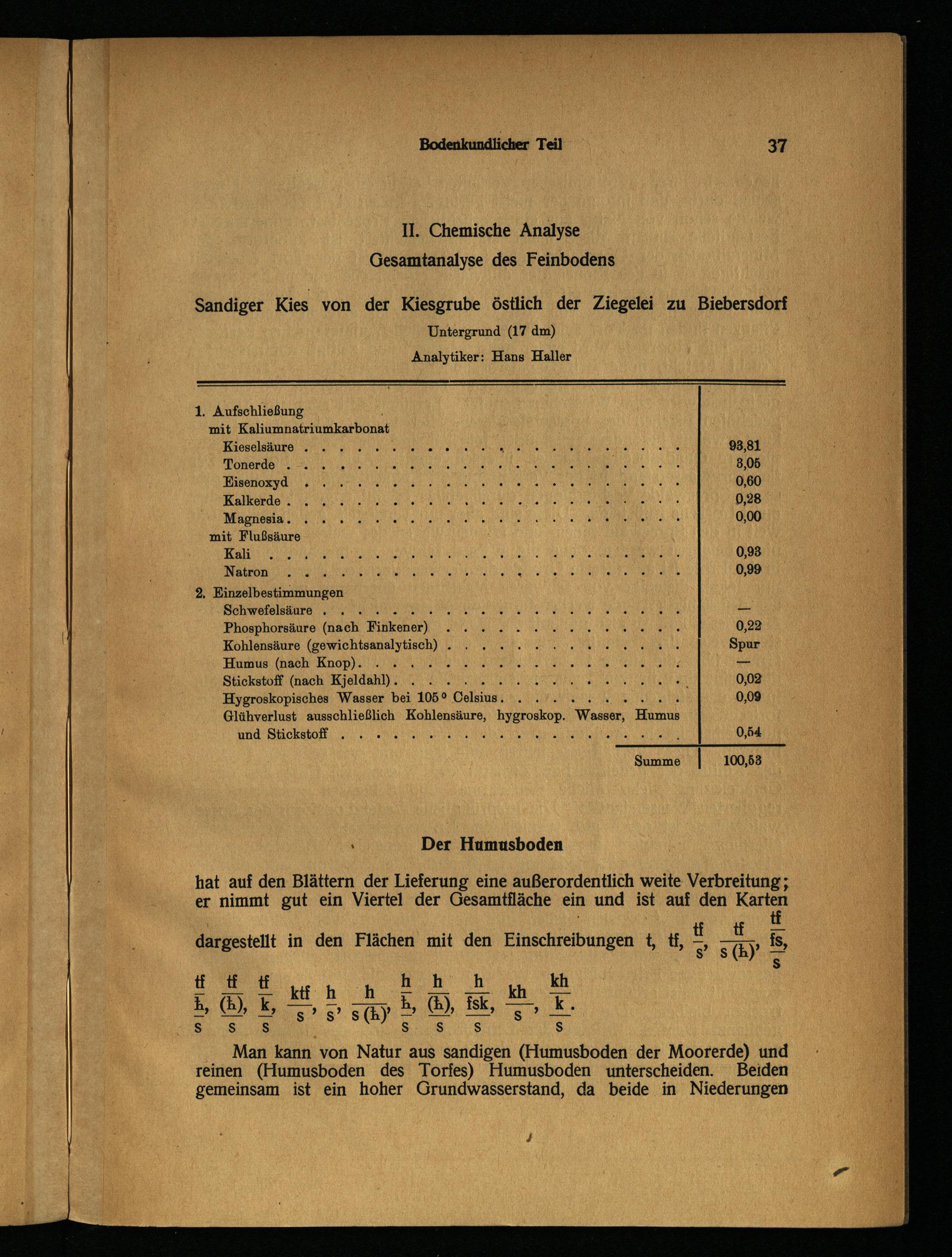 Glühverlust ausschließlich Kohlensäure, hygroskop. Wasser, Humus und Stickstoff ..