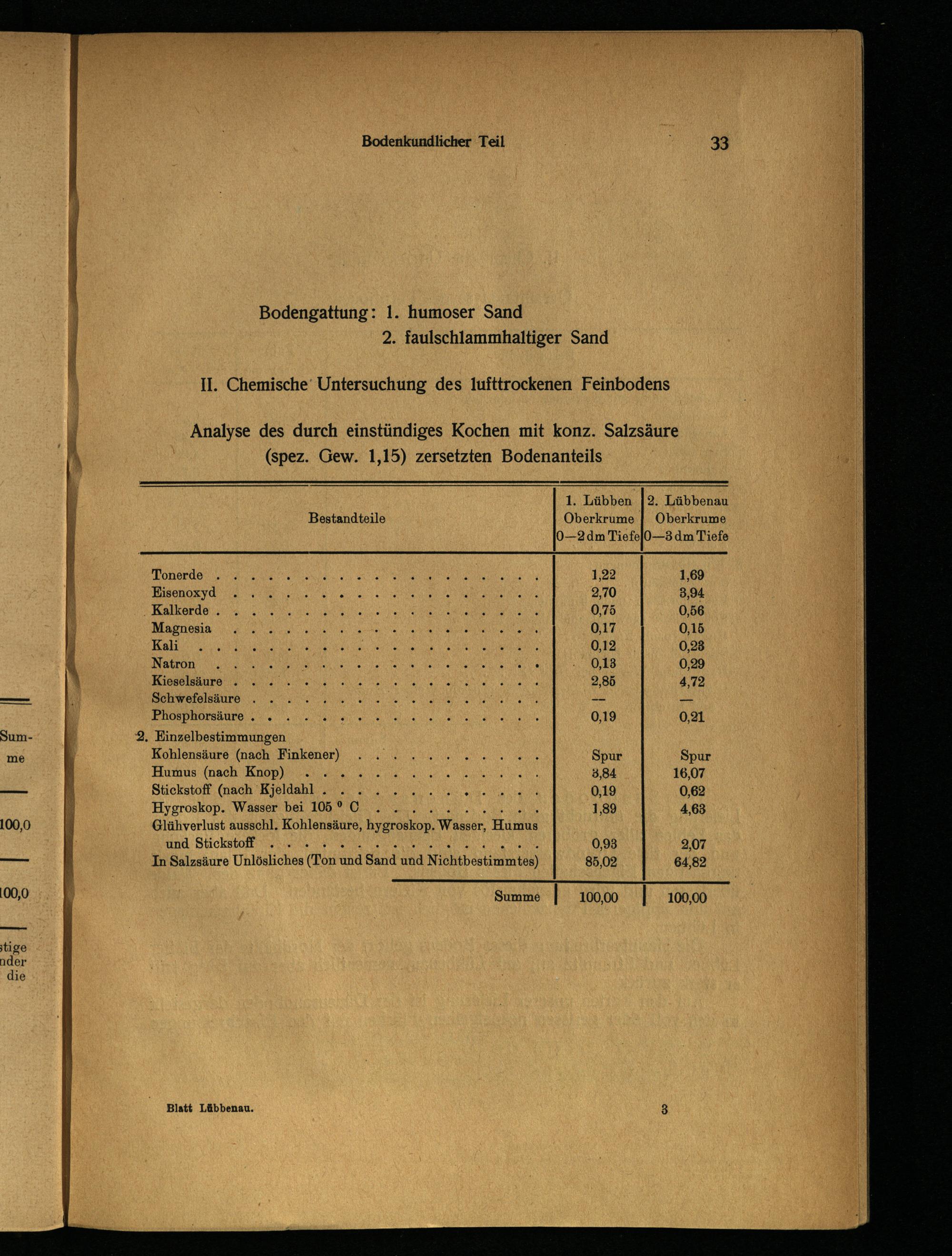 Analyse des durch einstündiges Kochen mit konz. Salzsäure (spez. Gew. 1,15) zersetzten Bodenanteils
