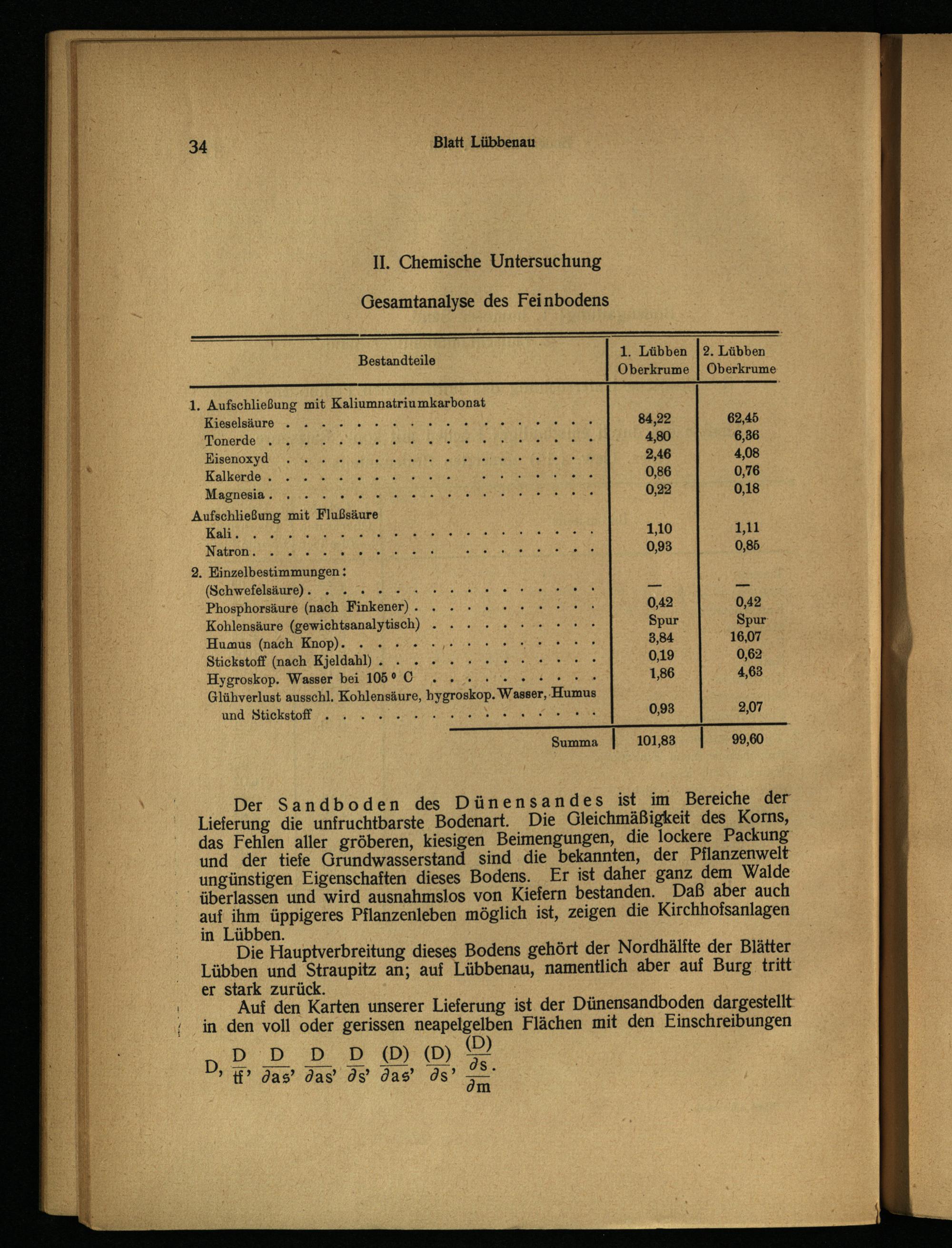 Der Sandboden des Dünensandes ist im Bereiche der Lieferung die unfruchtbarste Bodenart. Die Gleichmäßigkeit des Korns, das Fehlen aller gröberen, kiesigen Beimengungen, die lockere Packung und der tiefe Grundwasserstand sind die bekannten, der Pflanzenwelt ungünstigen Eigenschaften dieses Bodens. Er ist daher ganz dem Walde überlassen und wird ausnahmslos von Kiefern bestanden. Daß aber auch auf ihm üppigeres Pflanzenleben möglich ist, zeigen die Kirchhofsanlagen in Lübben .