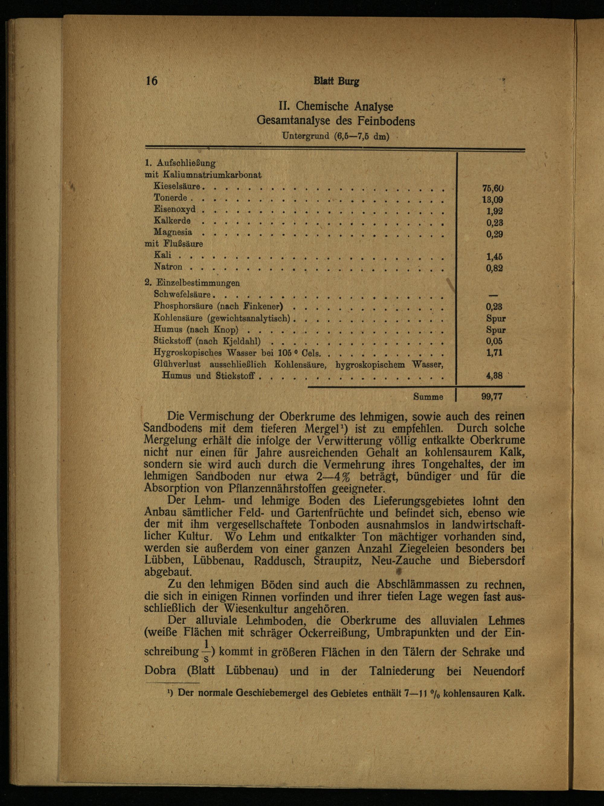 *) Der normale Geschiebemergel des Gebietes enthält 7—11 % kohlensauren Kalk.