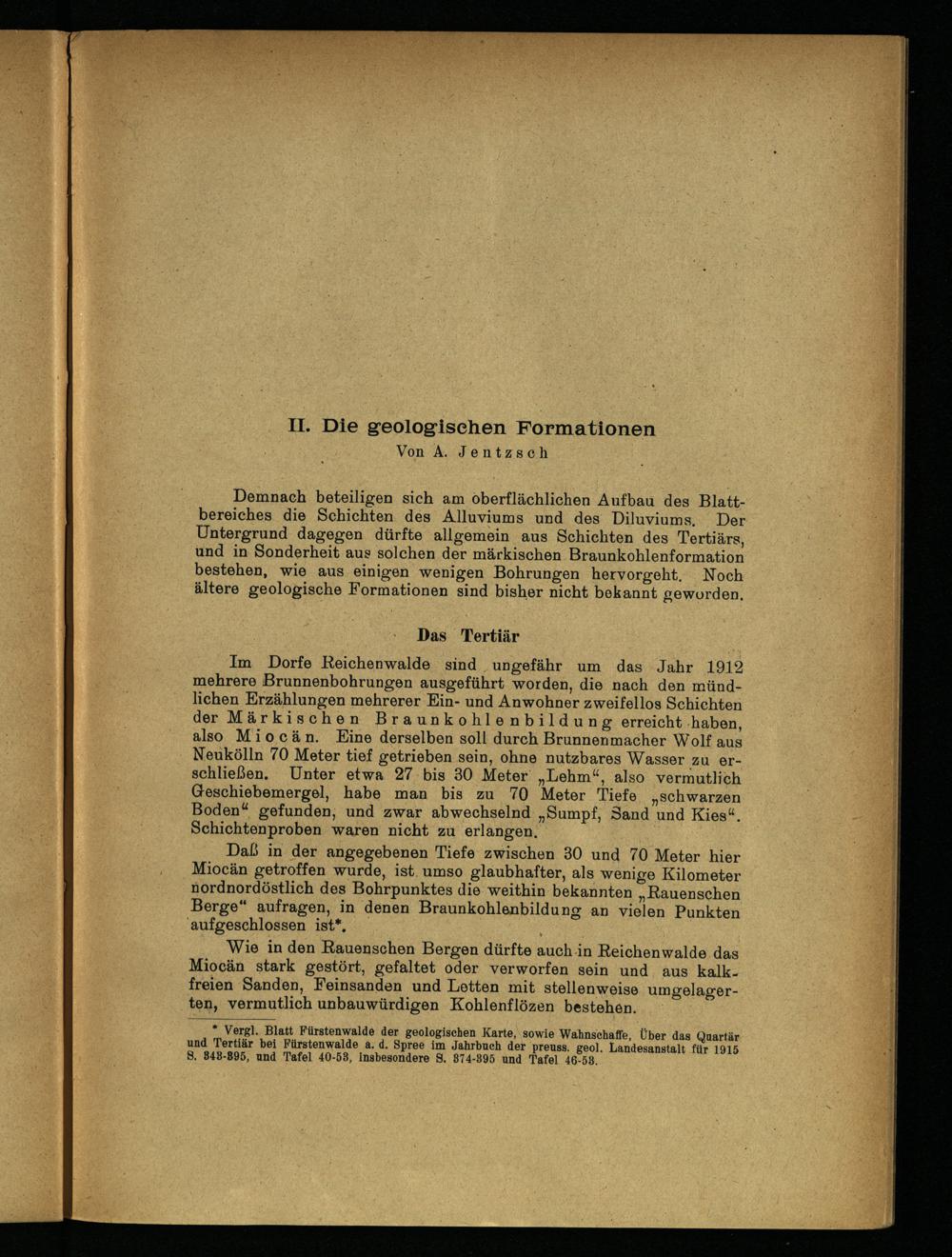 * Vergl. Blatt Fürstenwalde der geologischen Karte, sowie Wahnschaffe, Über das Quartär und Tertiär bei Pürstenwalde a. d. Spree im Jahrbuch der preuss. geol. Landesanstalt für 1915 8. 848-895, und Tafel 40-58, insbesondere 8. 874-395 und Tafel 46-58.