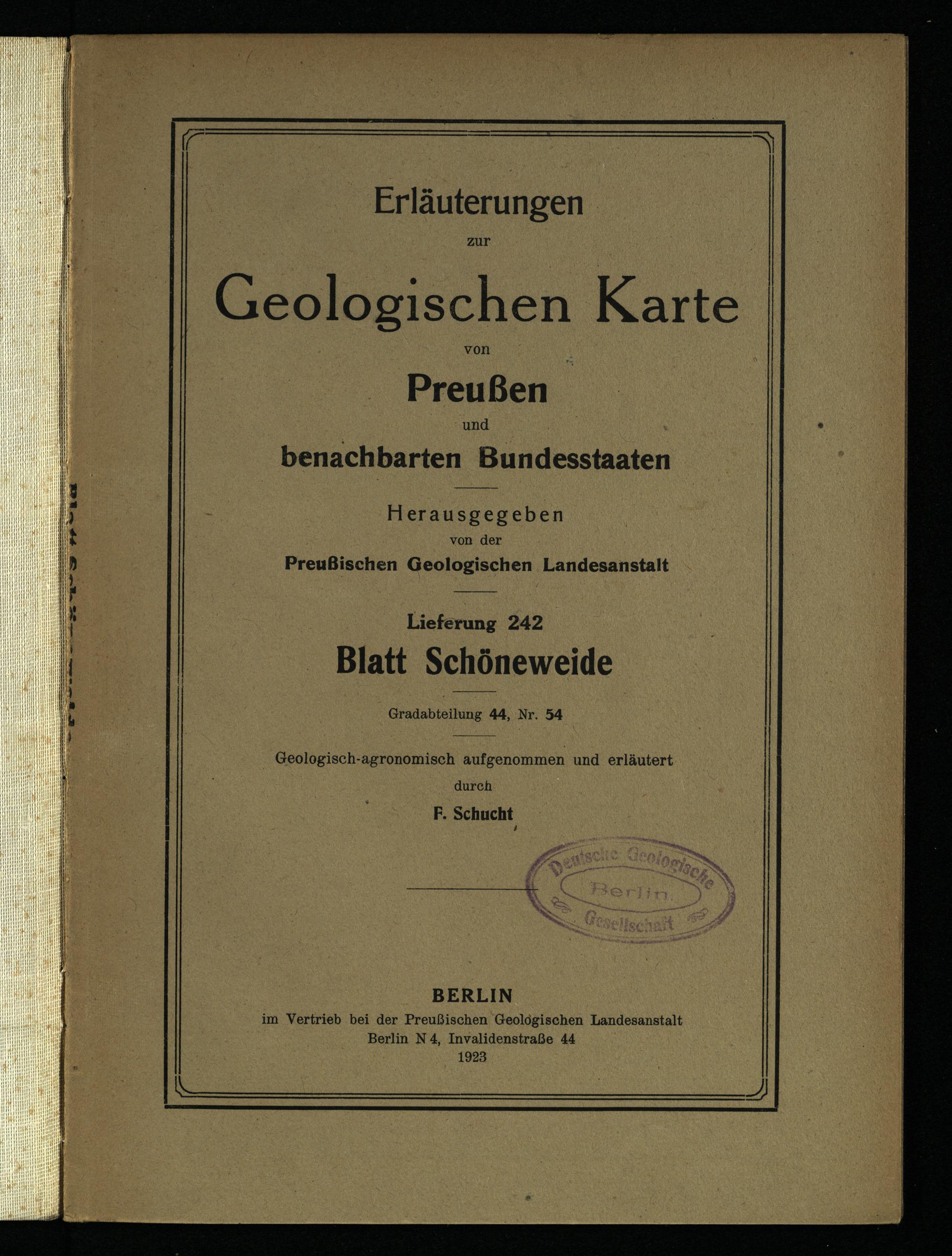 im Vertrieb bei der Preußischen Geologischen Landesanstalt Berlin N 4, Invalidenstraße 44