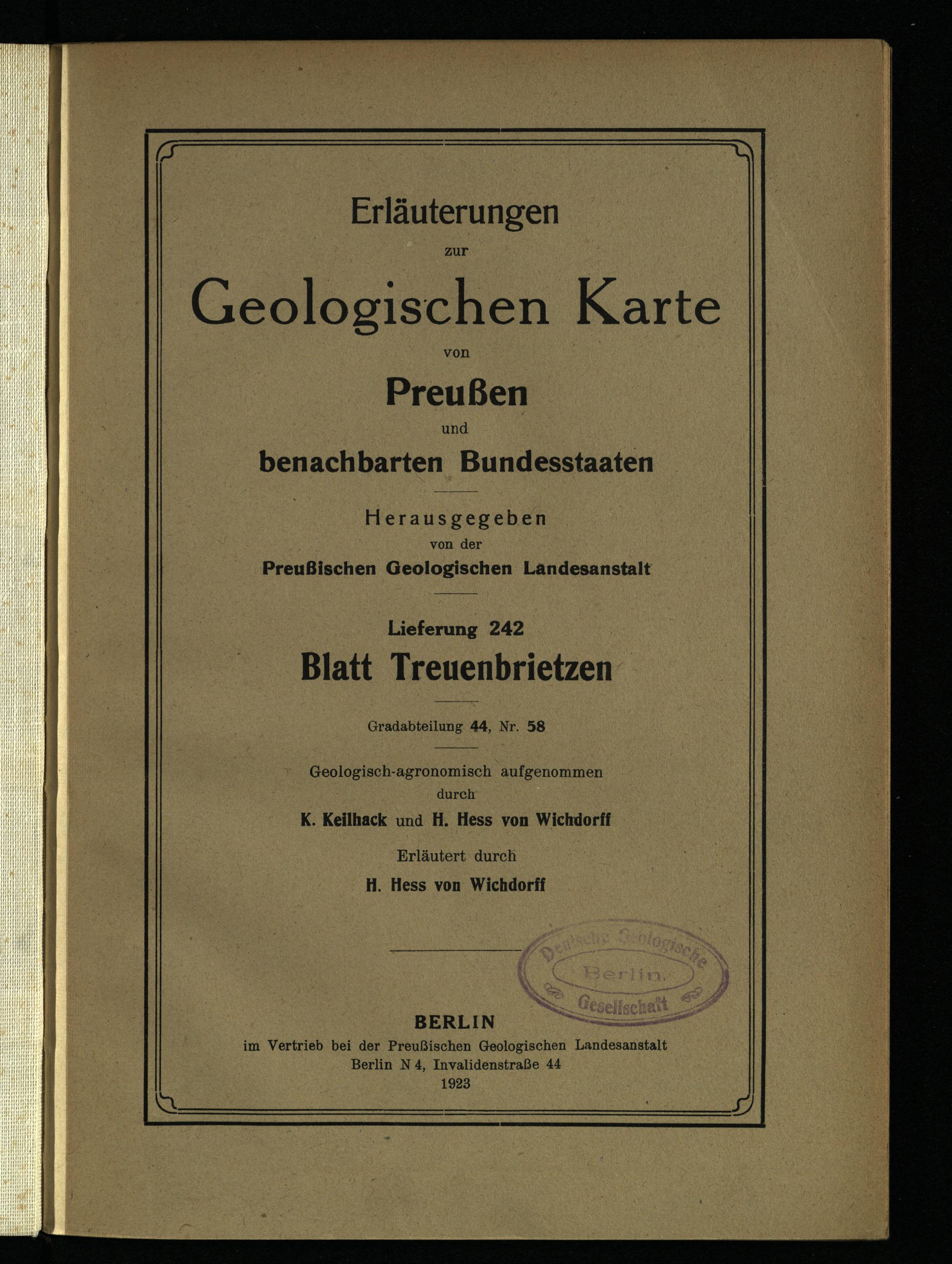 im Vertrieb bei der Preußischen Geologischen Landesanstalt Berlin N 4, Invalidenstraße 44