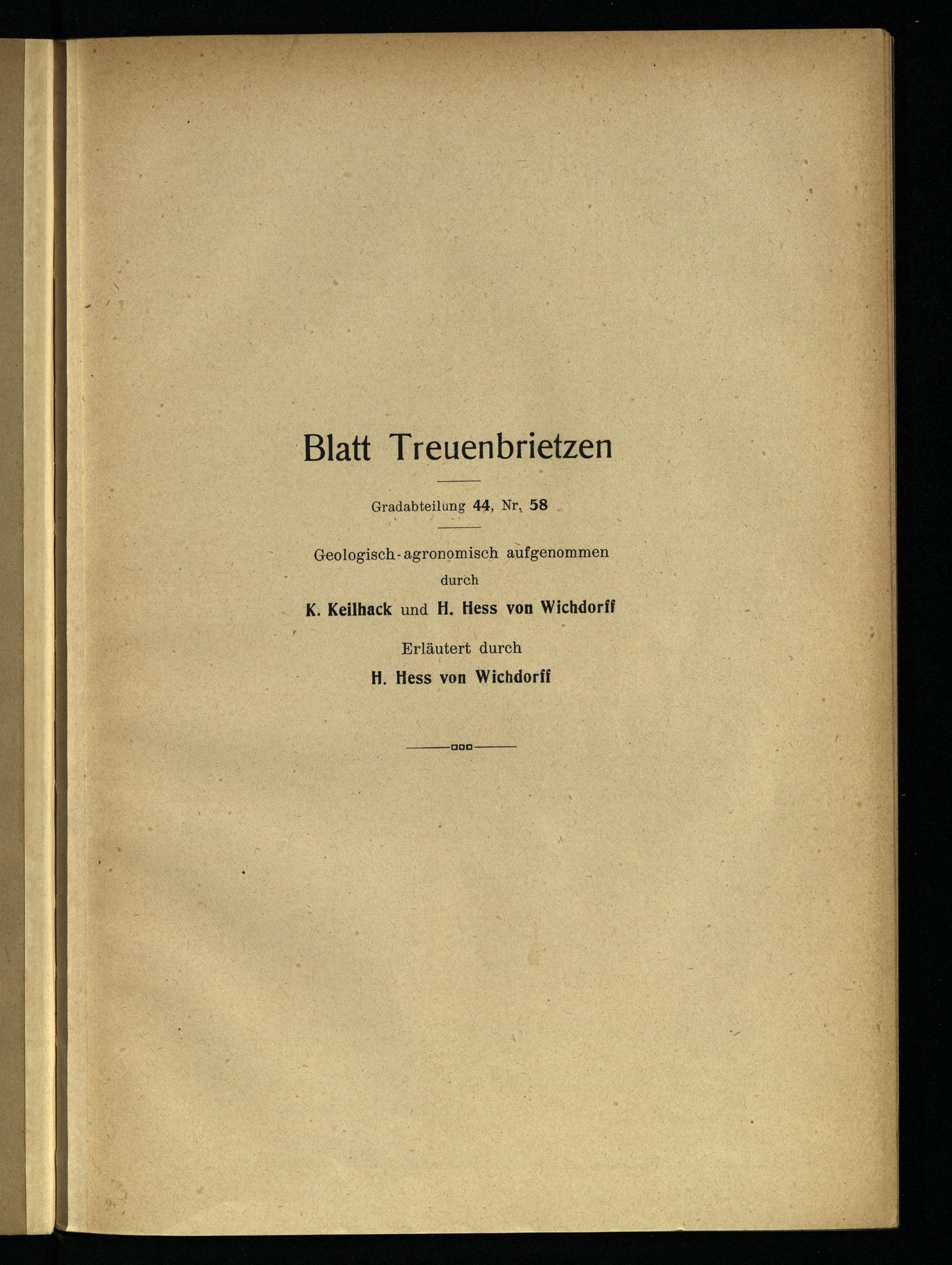 Blatt Treuenbrietzen Gradabteilung 44 , Nr, 58 Geologisch-agronomisch aufgenommen durch K. Keilhack und H. Hess von Wichdorff Erläutert durch H. Hess von Wichdorff □OO