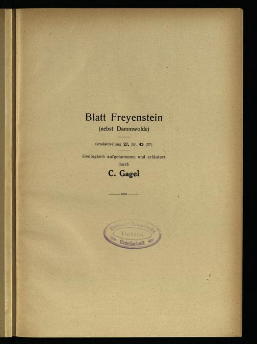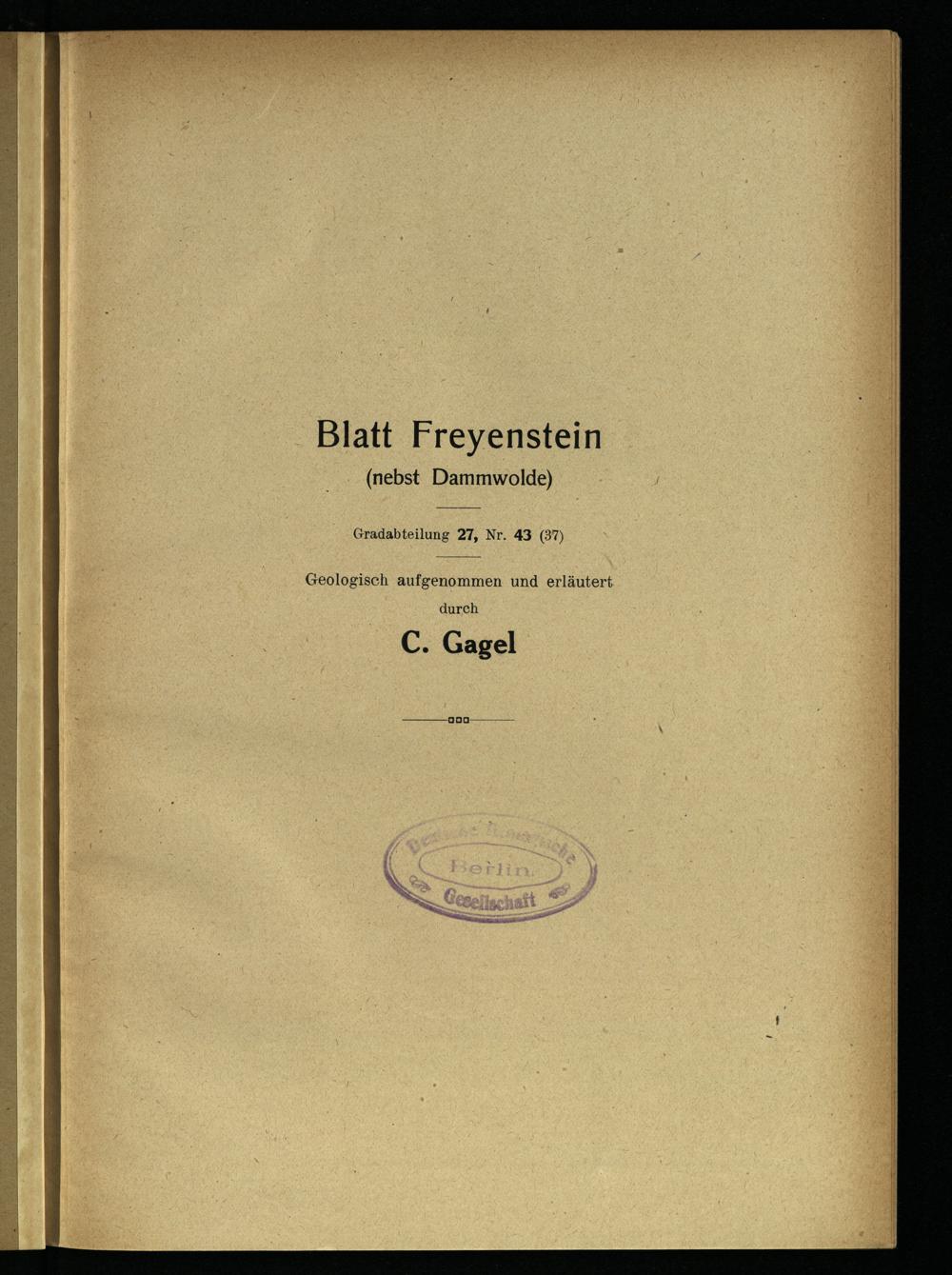 Blatt Freyenstein (nebst Dammwolde) Gradabteilung 27 , Nr. 43 (37) Geologisch aufgenommen und erläutert durch C. Gagel