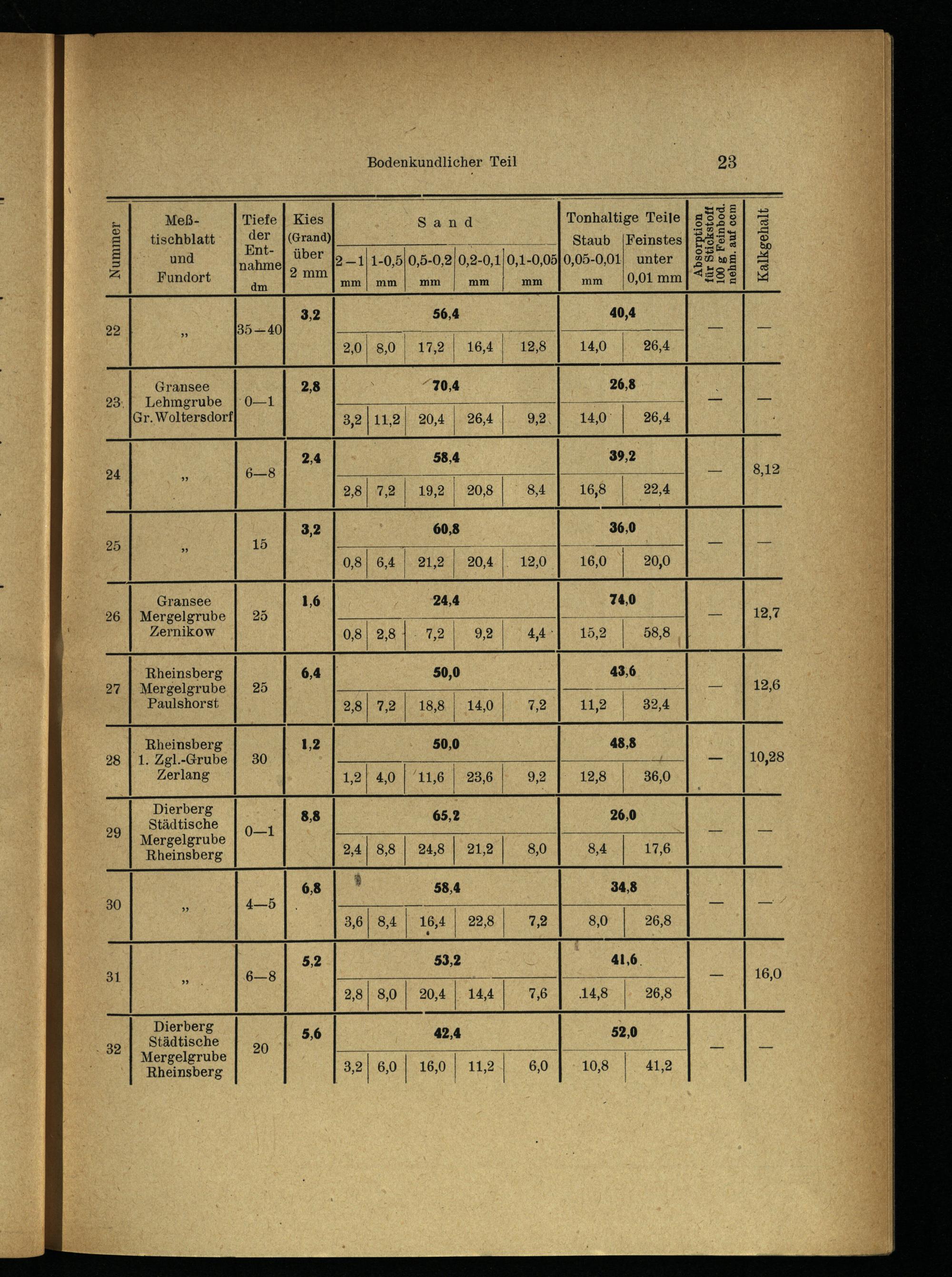 Absorption für Stickstoff 100 g Feinbod. nehm. auf ccm