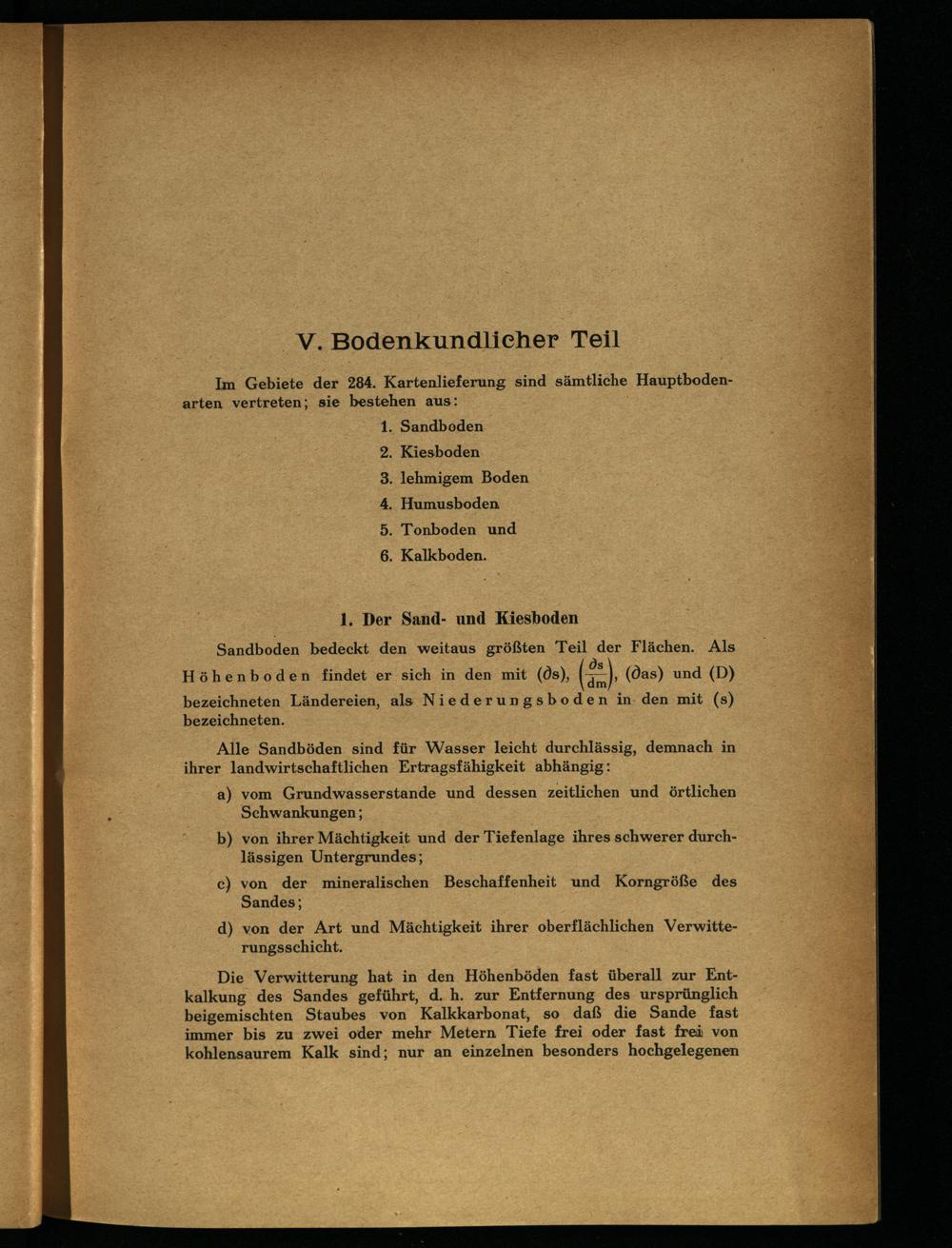 Im Gebiete der 284. Kartenlieferung sind sämtliche Hauptbodenarten vertreten; sie bestehen aus: