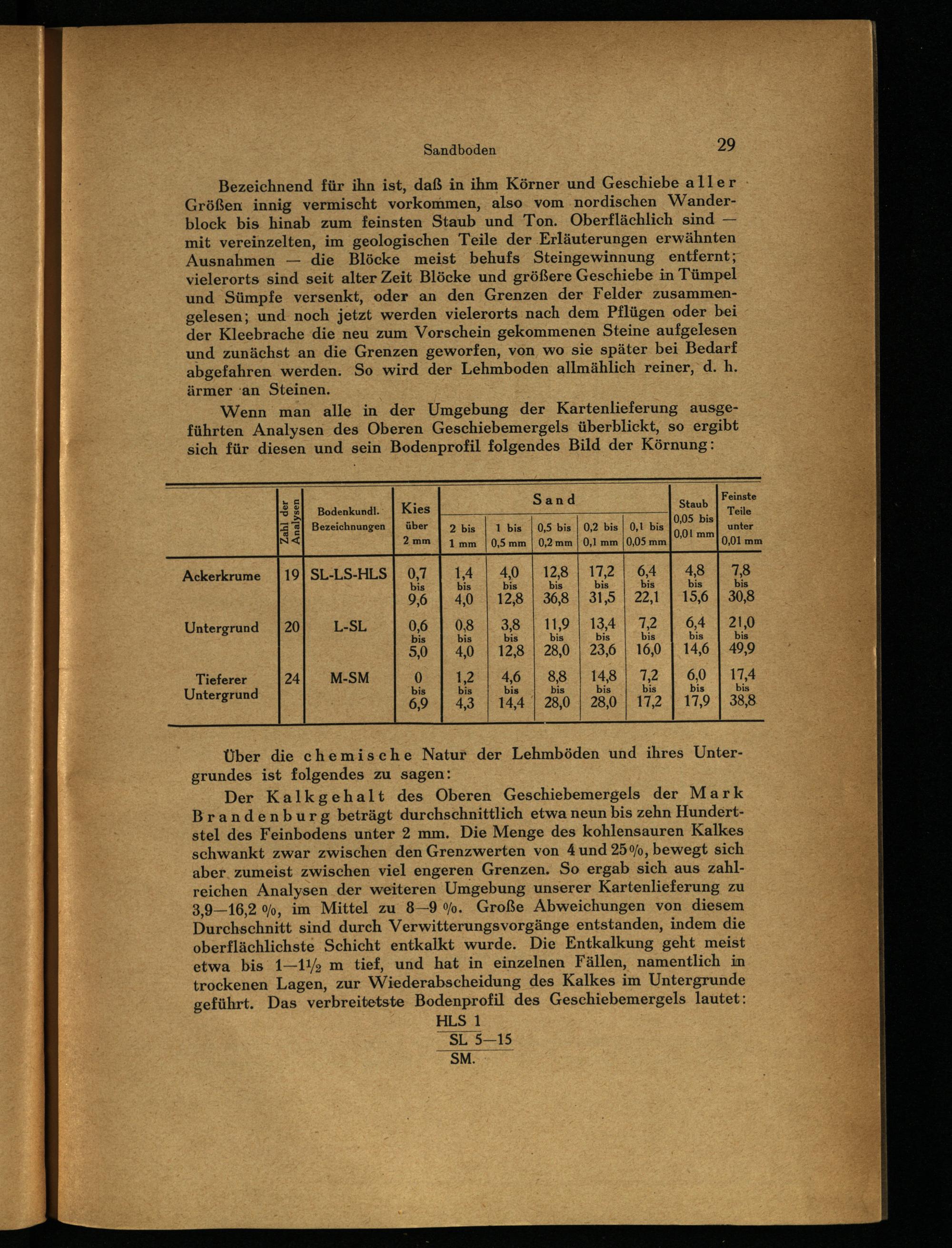 Wenn man alle in der Umgebung der Kartenlieferung ausgeführten Analysen des Oberen Geschiebemergels überblickt, so ergibt sich für diesen und sein Bodenprofil folgendes Bild der Körnung: