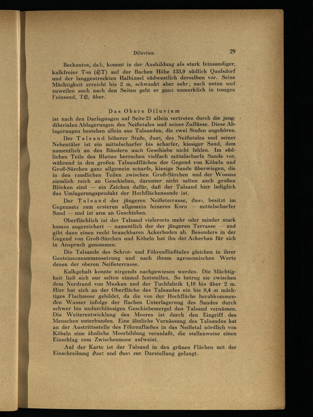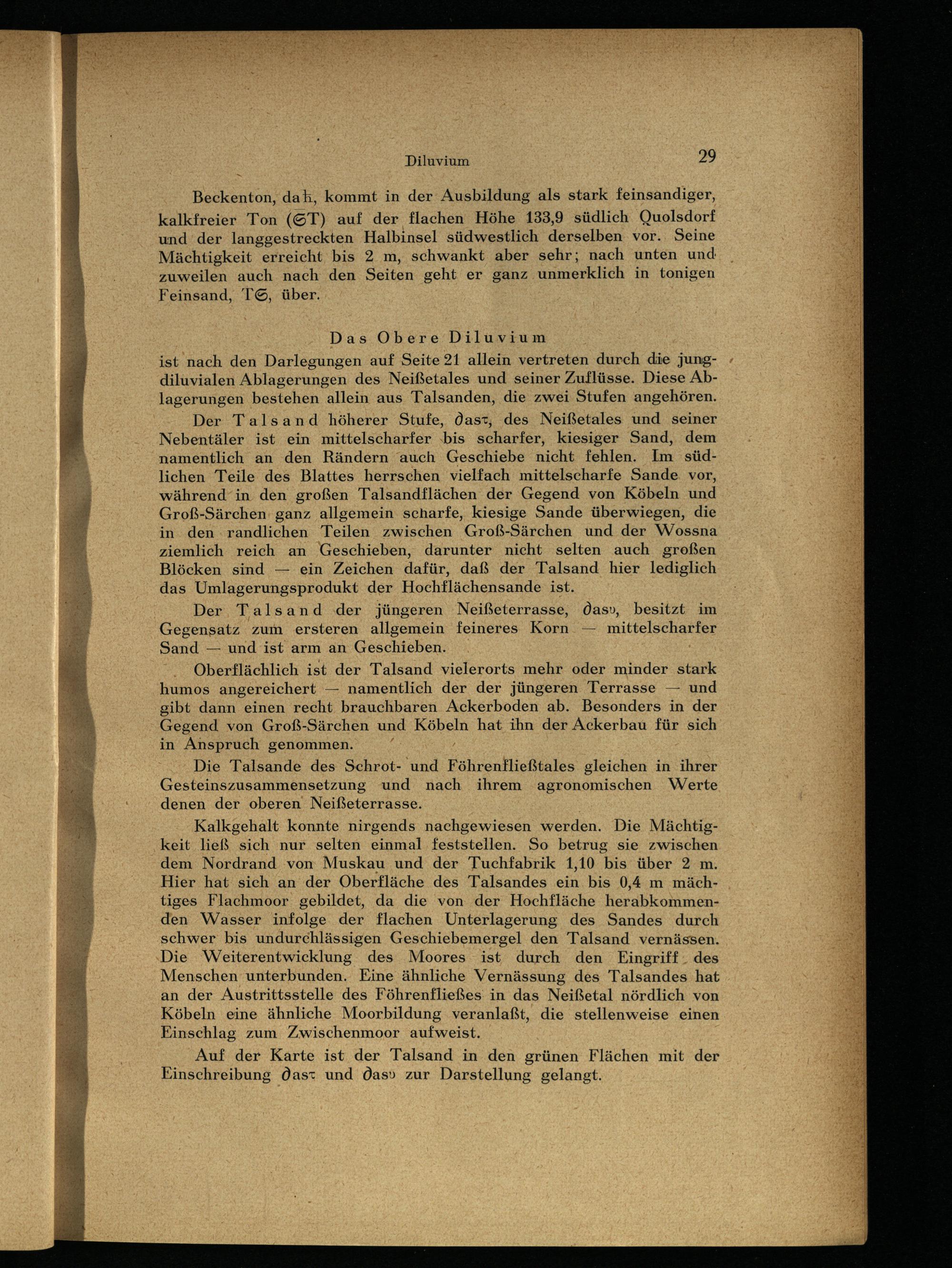 ist nach den Darlegungen auf Seite 21 allein vertreten durch die jungdiluvialen Ablagerungen des Neißetales und seiner Zuflüsse. Diese Ablagerungen bestehen allein aus Talsanden, die zwei Stufen angehören.