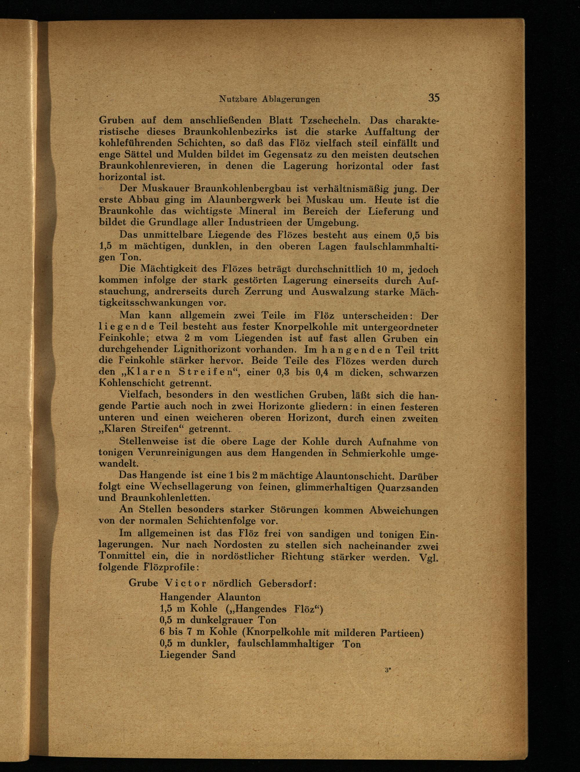 Gruben auf dem anschließenden Blatt Tzschecheln. Das charakteristische dieses Braunkohlenbezirks ist die starke Auffaltung der kohleführenden Schichten, so daß das Flöz vielfach steil einfällt und enge Sättel und Mulden bildet im Gegensatz zu den meisten deutschen Braunkohlenrevieren, in denen die Lagerung horizontal oder fast horizontal ist.