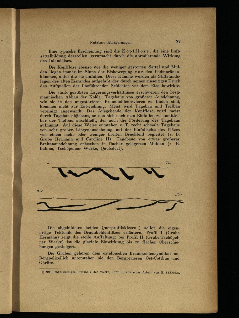 Die Kopfflöze ebenso wie die weniger gestörten Sättel und Mulden liegen immer im Sinne der Eisbewegung vor den Endmoränenkämmen, unter die sie einfallen. Diese Kämme werden als Stillstandslagen des alten Eisrandes aufgefaßt, der durch seinen einseitigen Druck das Aufquellen der flözführenden Schichten vor dem Eise bewirkte.