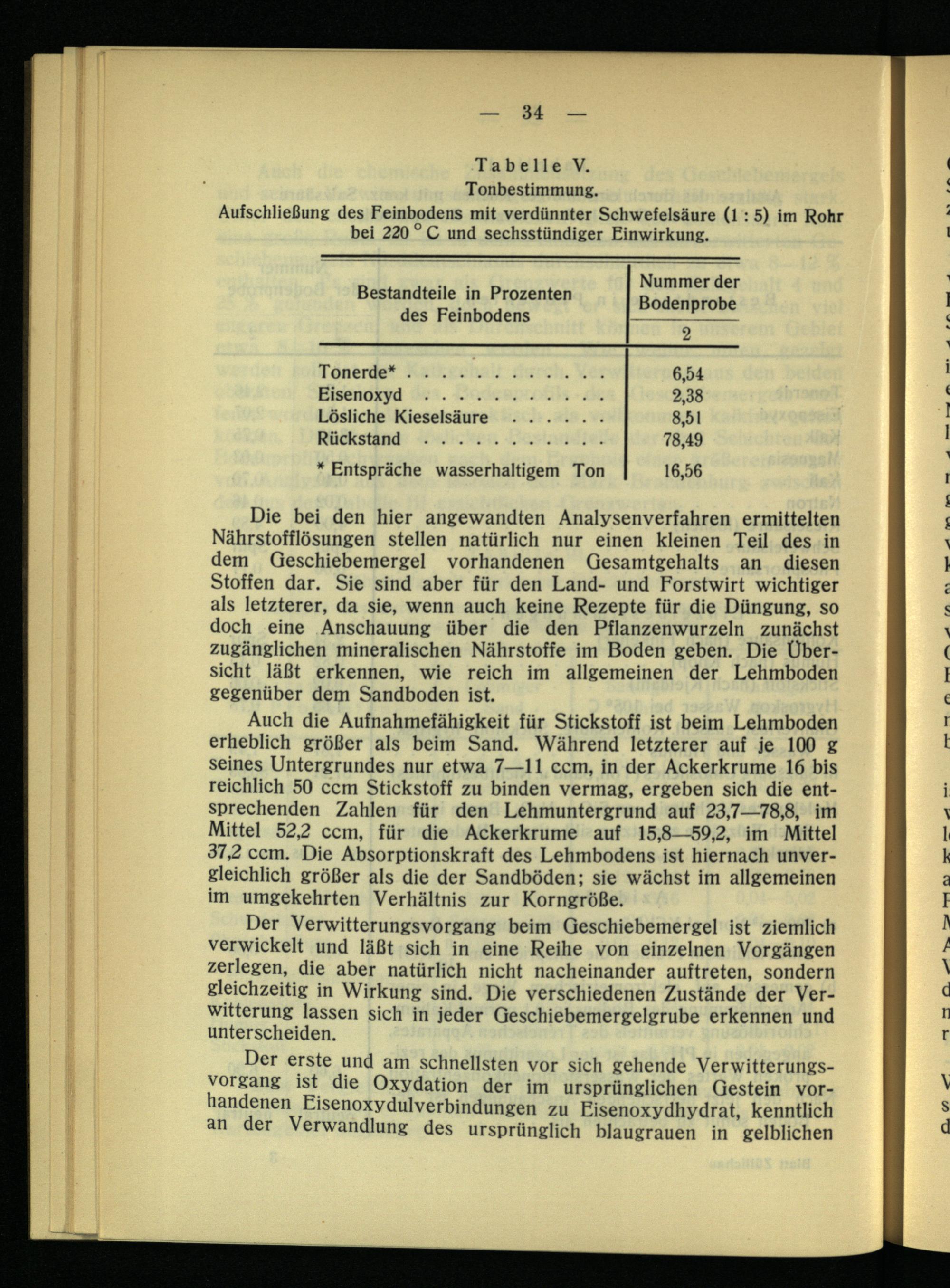 Aufschließung des Feinbodens mit verdünnter Schwefelsäure (1:5) im Rohr bei 220 ° C und sechsstündiger Einwirkung.