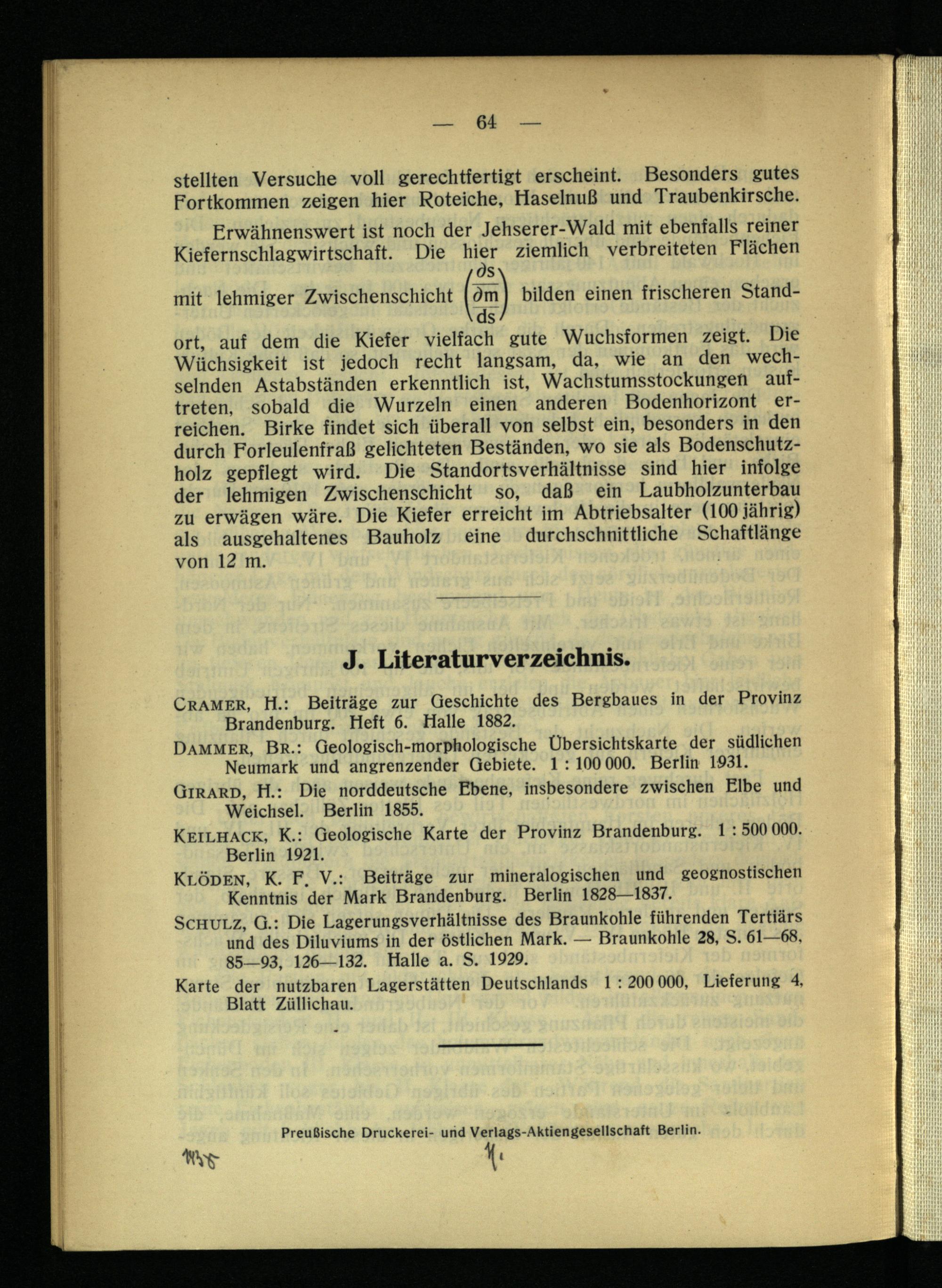 DAMMER, BR.: Geologisch - morphologische Übersichtskarte der südlichen Neumark und angrenzender Gebiete. 1: 100 000. Berlin 1931. GIRARD , H.: Die norddeutsche Ebene, insbesondere zwischen Elbe und Weichsel. Berlin 1855.