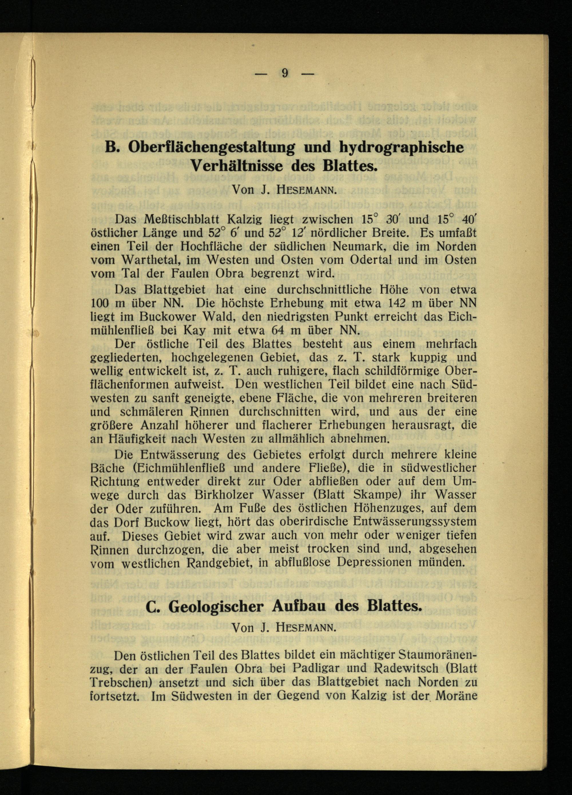 B. Oberflächengestaltung und hydrographische Verhältnisse des Blattes.
