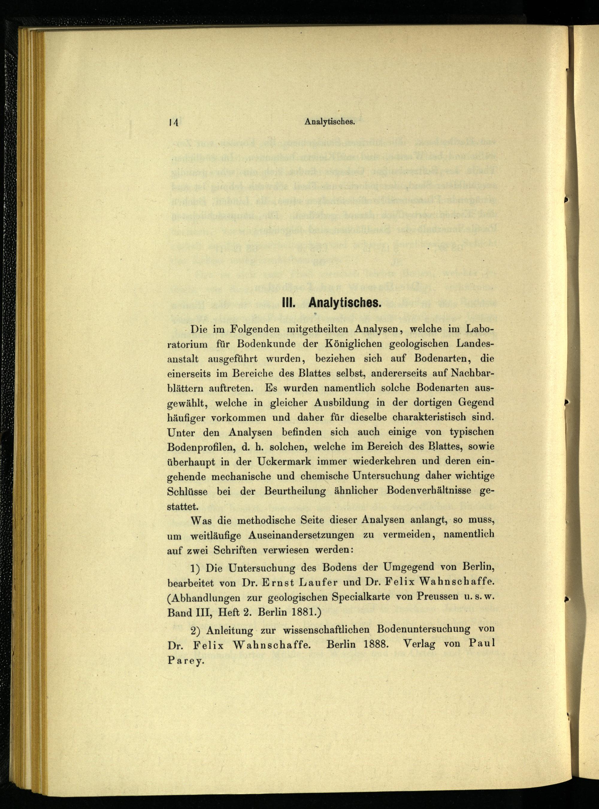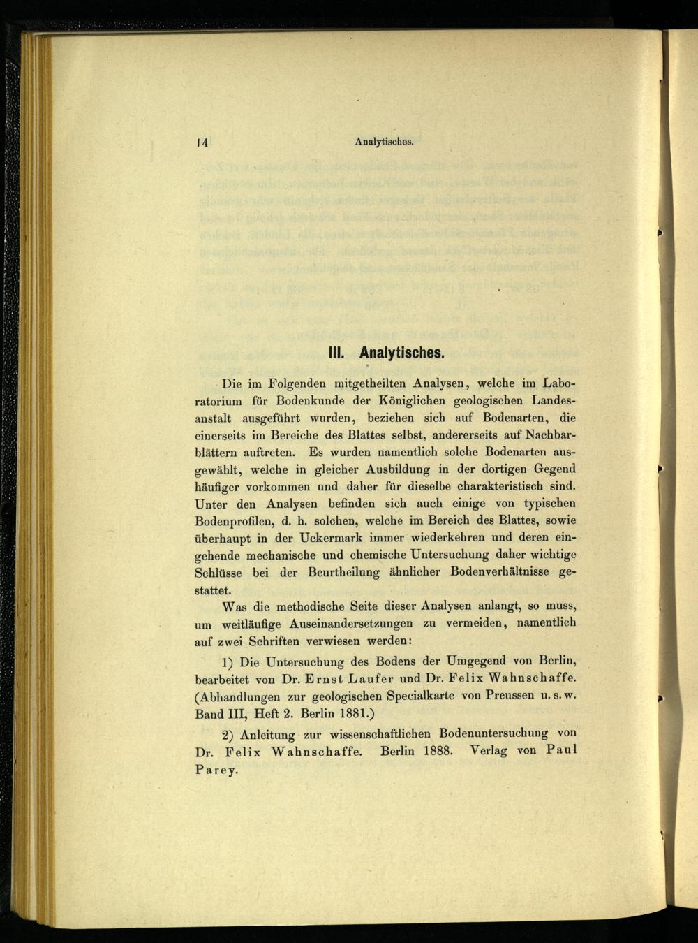 1) Die Untersuchung des Bodens der Umgegend von Berlin , bearbeitet von Dr. Ernst Läufer und Dr. Felix Wahnschaffe . (Abhandlungen zur geologischen Specialkarte von Preussen u. s. w. Band III, Heft 2. Berlin 1881.)