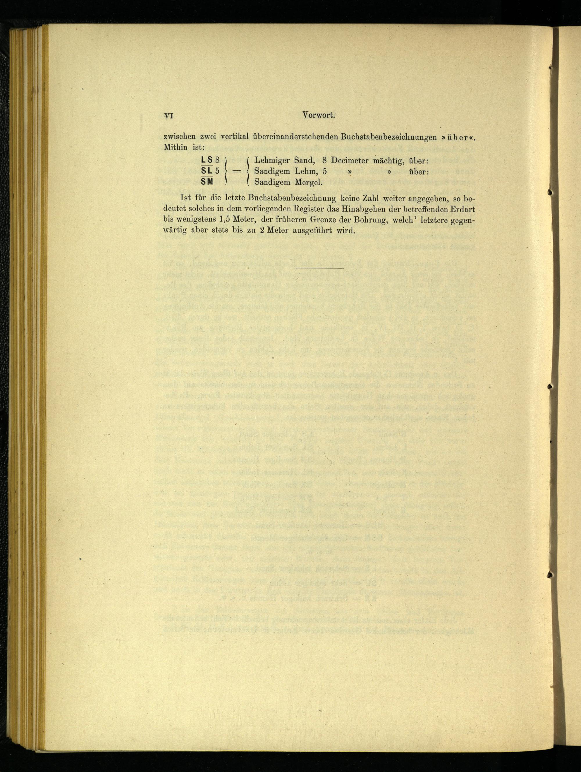 deutet solches in dem vorliegenden Register das Hinabgehen der betreffenden Erdart bis wenigstens 1,5 Meter, der früheren Grenze der Bohrung, welch’ letztere gegenwärtig aber stets bis zu 2 Meter ausgeführt wird.