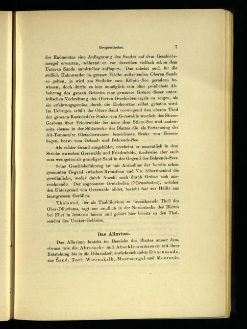 Als echter Grand ausgebildet, erscheint er namentlich in dem Striche zwischen Gerswalde und Friedenfelde, theilweise aber auch zum wenigsten als grandiger Sand in der Gegend des Behrends-Sees.