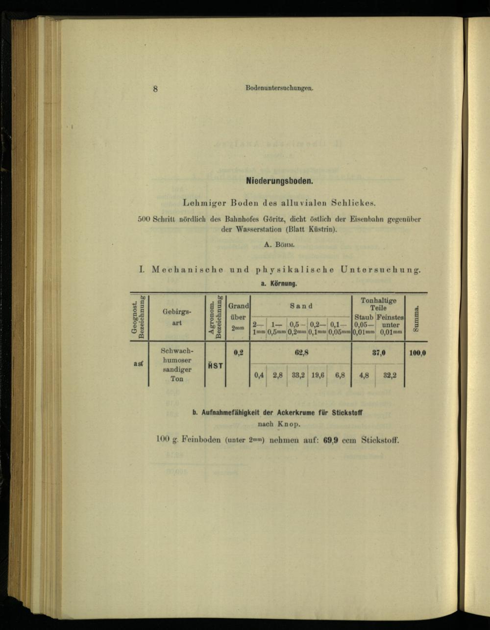 b. Aufnahmefähigkeit der Ackerkrume für Stickstoff nach Knop.