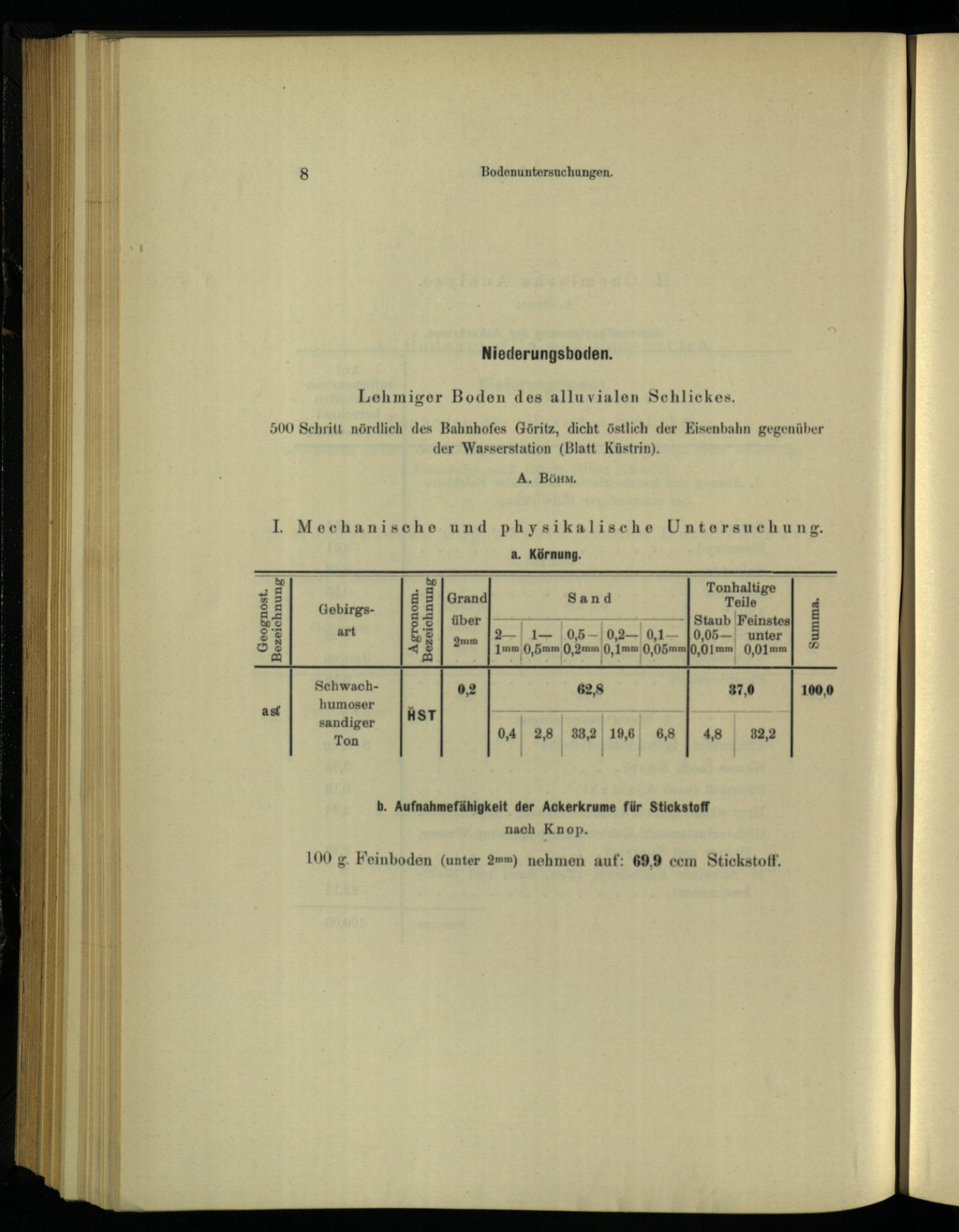 10U g Feinboden (unter 2""") nehmen auf: 69.9 ccm Stickstoff.