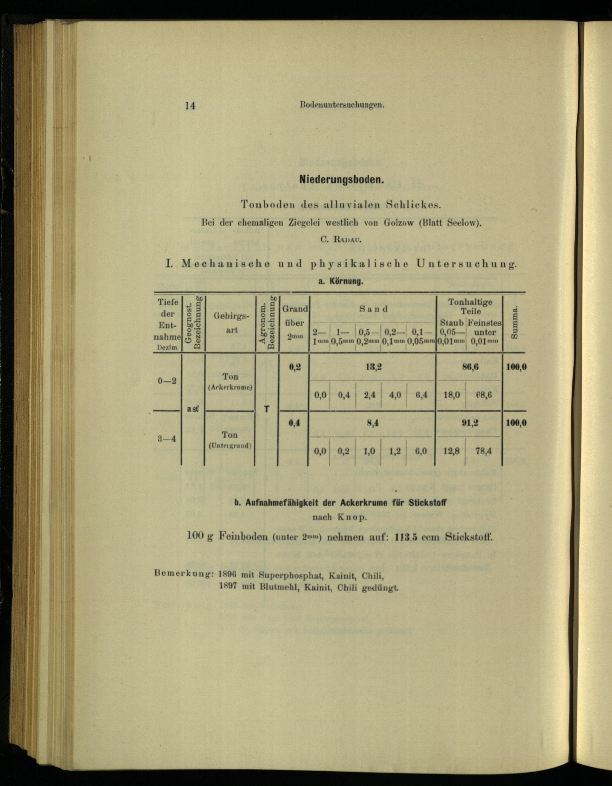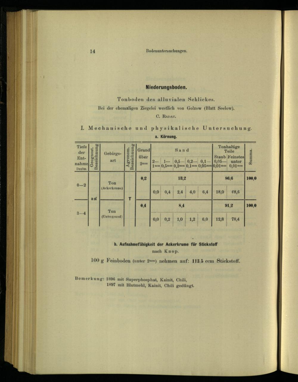 b. Aufnahmefähigkeit der Ackerkrume für Stickstoff