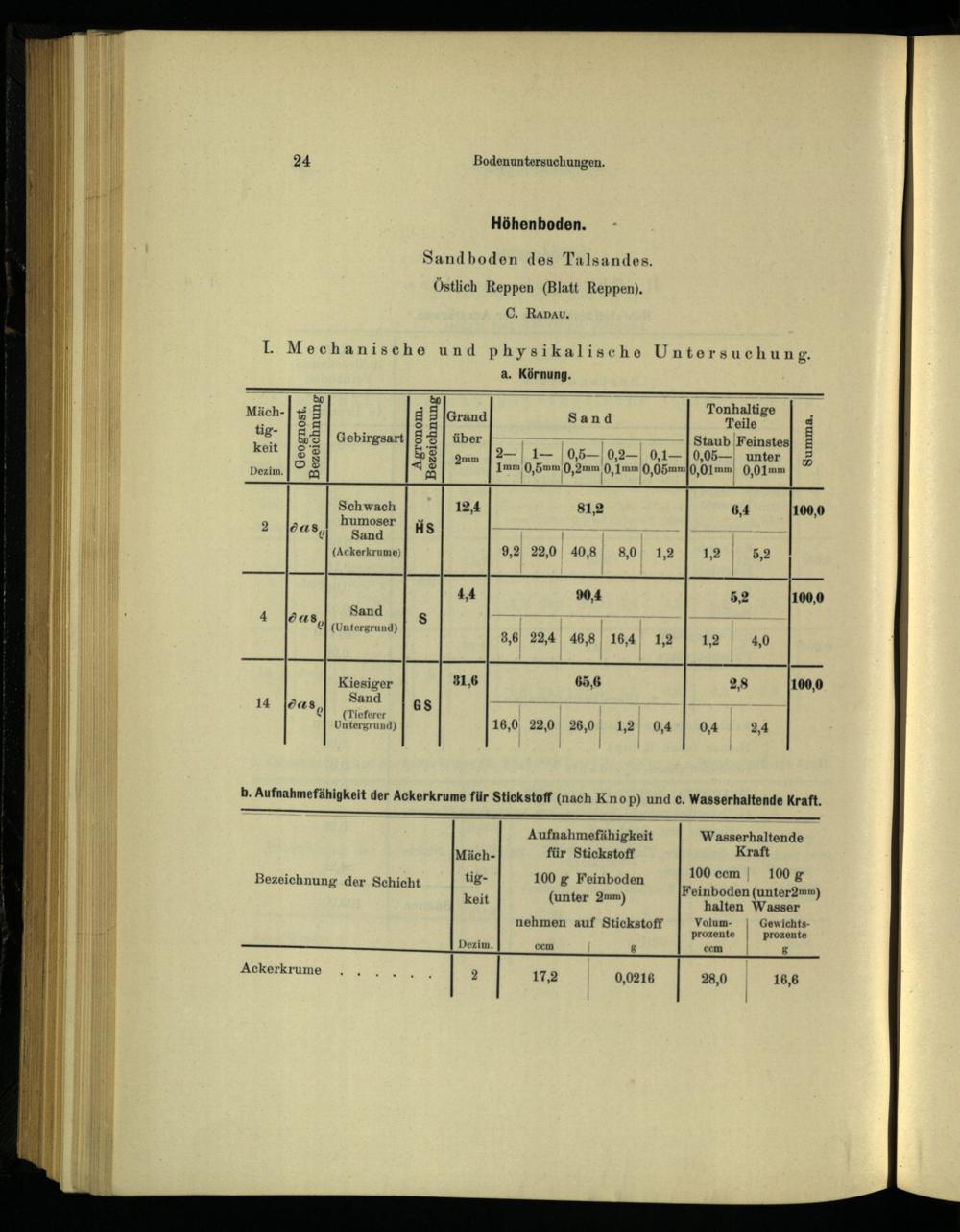 b. Aufnahmefähigkeit der Ackerkrume für Stickstoff (nach Knop) und c. Wasserhaltende Kraft.