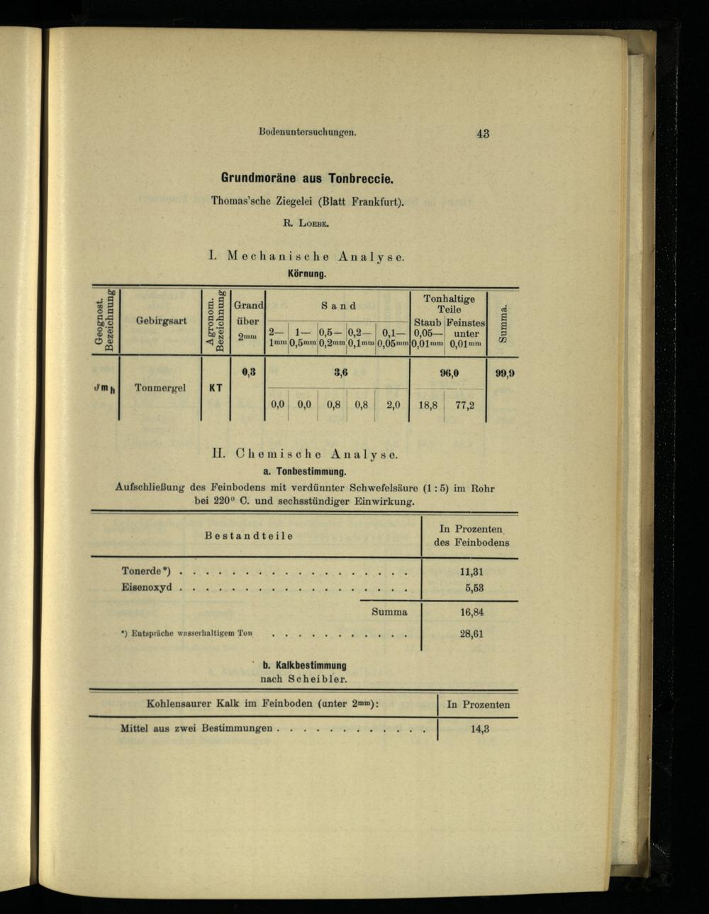 II. Chemische Analy s o. a. Tonbestimmung.
