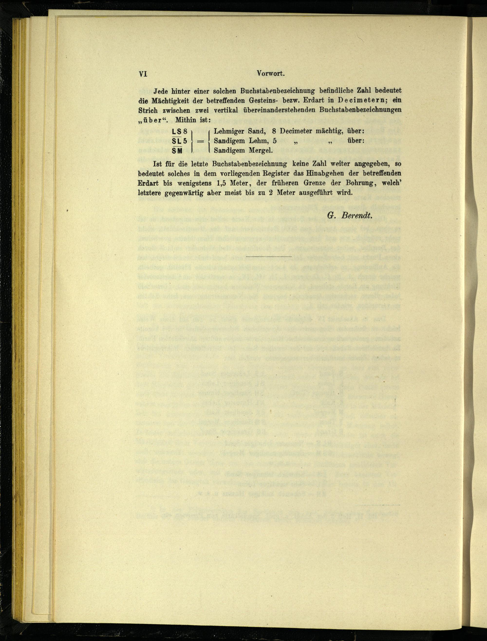 Ist für die letzte Buchstabenbezeichnung keine Zahl weiter angegeben, so bedeutet solches in dem vorliegenden Register das Hinabgehen der betreffenden Erdart bis wenigstens 1,5 Meter, der früheren Grenze der Bohrung, welch’ letztere gegenwärtig aber meist bis zu 2 Meter ausgeführt wird.