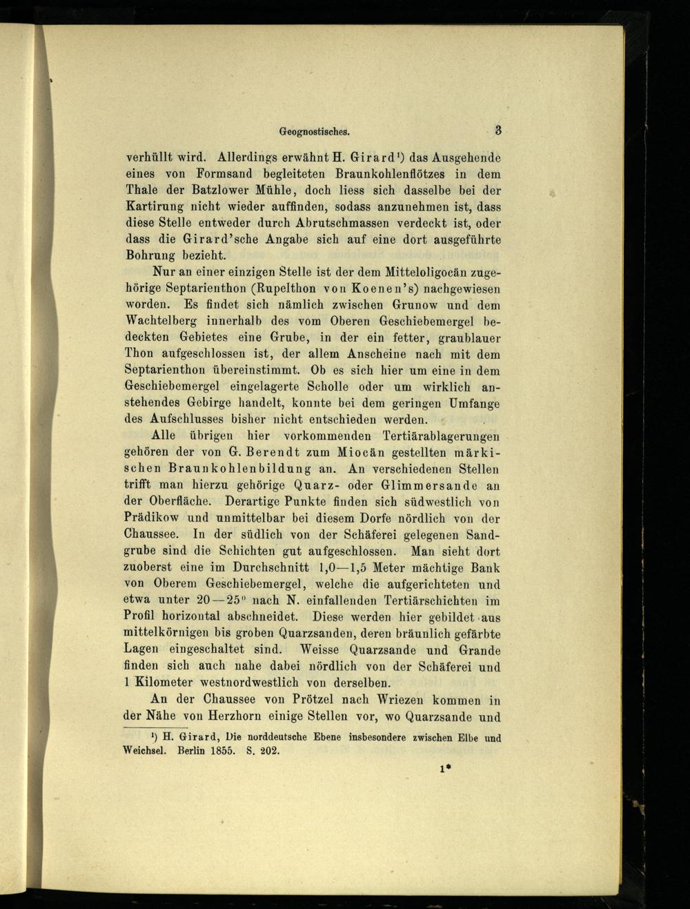 verhüllt wird. Allerdings erwähnt H. Girard 1 ) das Ausgehende eines von Formsand begleiteten Braunkohlenflötzes in dem Thale der Batzlower Mühle, doch liess sich dasselbe bei der Kartirung nicht wieder auffinden, sodass anzunehmen ist, dass diese Stelle entweder durch Abrutschmassen verdeckt ist, oder dass die Girard’sche Angabe sich auf eine dort ausgeführte Bohrung bezieht.