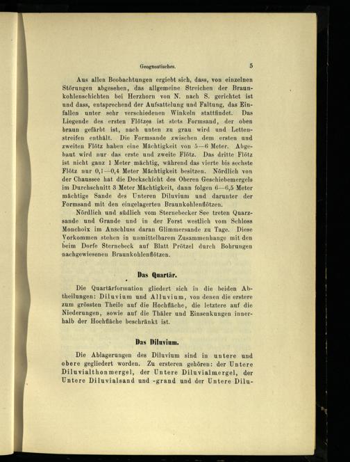 Nördlich und südlich vom Sternebecker See treten Quarzsande und Grande und in der Forst westlich vom Schloss Monchoix im Anschluss daran Glimmersande zu Tage. Diese Vorkommen stehen in unmittelbarem Zusammenhänge mit den beim Dorfe Sternebeck auf Blatt Prötzel durch Bohrungen nachgewiesenen Braunkohlenflötzen.