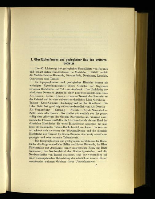 Die topographischen und geologischen Verhältnisse der Hochfläche, die die gute nördliche Hälfte des Blattes Bärwalde, das Blatt Fürstenfelde mit Ausnahme seiner südwestlichen Ecke, das Blatt Neudamm , das Nordostdrittel des Blattes Quartschen und die Nordwesthälfte von Tamsel einnimmt, sind nur verständlich bei einer vorausgehenden Betrachtung des nördlich an unsere Blätter anstoßenden weiteren Gebietes (siehe Übersichtskarte).