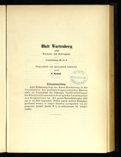 Jeder Erläuterung liegt eine Kurze Einführung in das Verständniss der geologisch-agronomischen Karten, sowie ein Verzeichniss der bisherigen Veröffentlichungen der KöniglichPreussischen Geologischen Landesanstalt und Bergakademie bei. Bei ganzen Kartenlieferungen wird nur je ein Heft beigegeben. Sollten jedoch mehrere Exemplare gewünscht werden, so können dieselben unentgeltlich von der genannten Anstalt (Berlin N. 4, Invalidenstrasse 44) bezogen werden.