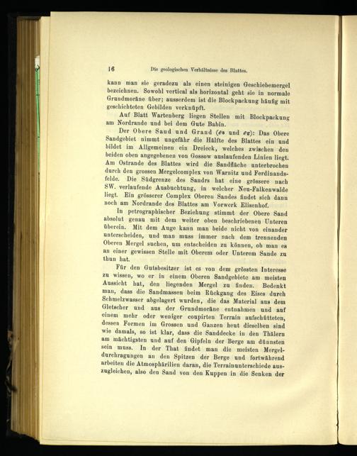 kann man sie geradezu als einen steinigen Geschiebemergel bezeichnen. Sowohl vertical als horizontal geht sie in normale Grundmoräne über; ausserdem ist die Blockpackung häufig mit geschichteten Gebilden verknüpft.