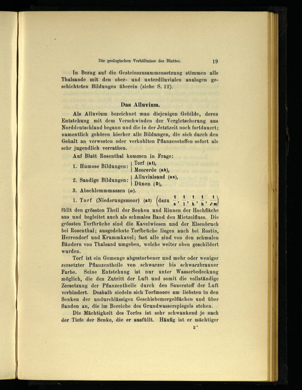 Als Alluvium bezeichnet man diejenigen Gebilde, deren Entstehung mit dem Verschwinden der Vergletscherung aus Norddeutschland begann und die in der Jetztzeit noch fortdauert; namentlich gehören hierher alle Bildungen, die sich durch den Gehalt an verwesten oder verkohlten Pflanzenstoffen sofort als sehr jugendlich verrathen.