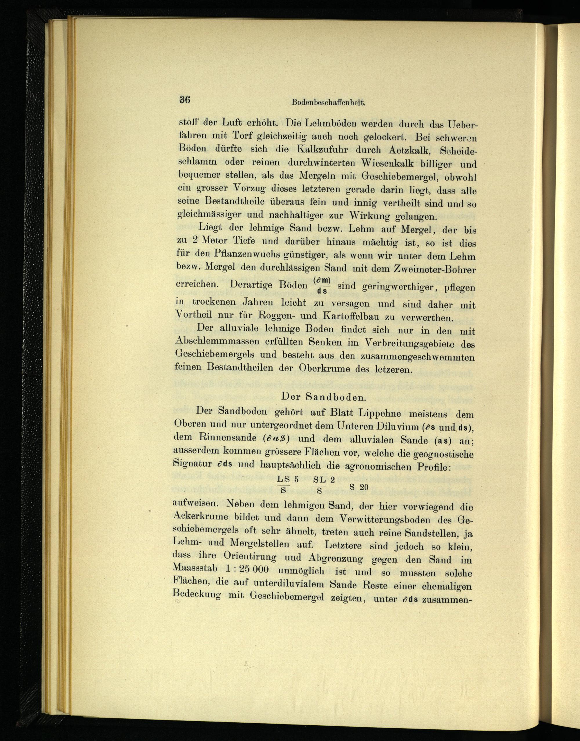 Der Sandboden gehört auf Blatt Lippehne meistens dem Oberen und nur untergeordnet dem Unteren Diluvium (r?s und ds), dem Rinnensande (<9«S) und dem alluvialen Sande (as) an; ausserdem kommen grössere Flächen vor, welche die geognostische Signatur <5ds und hauptsächlich die agronomischen Profile: