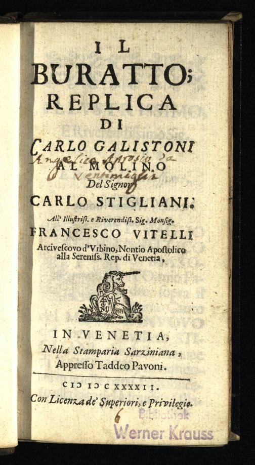 / Replica di Carlo Galistoni ^[d.i. Angelico Aprosio] al Molino del Signor Carlo Stigliani.