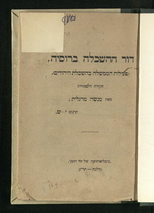 (פעולות הממשלה בהשכלה היהודים) : חקירה היסטורית