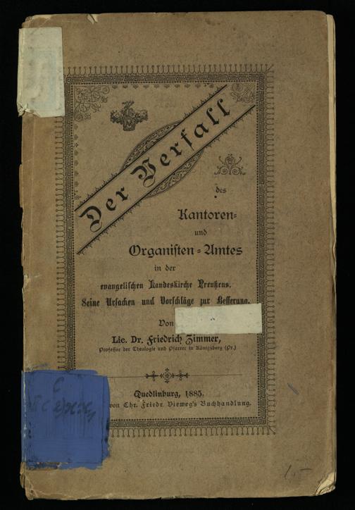 Der Verfall des Kantoren- u[nd] Organistenamtes in der evangelischen Landeskirche Preußens