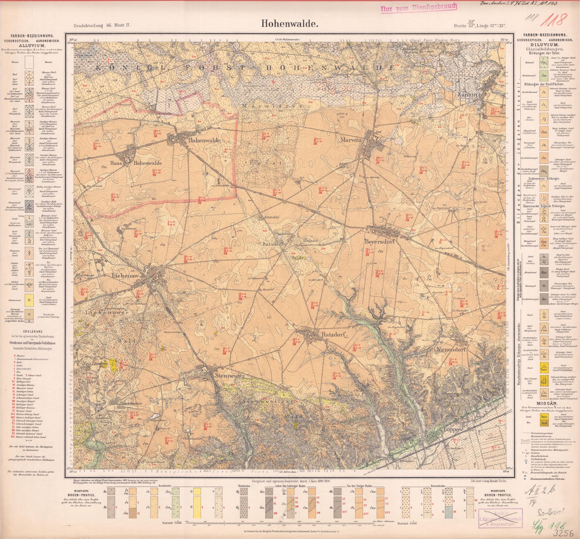 Grad-Abtheilung 46, Blatt 17 [Neue Nr. 3256] (1905) Hohenwalde / geognostisch und agronomisch bearb. durch J. Korn